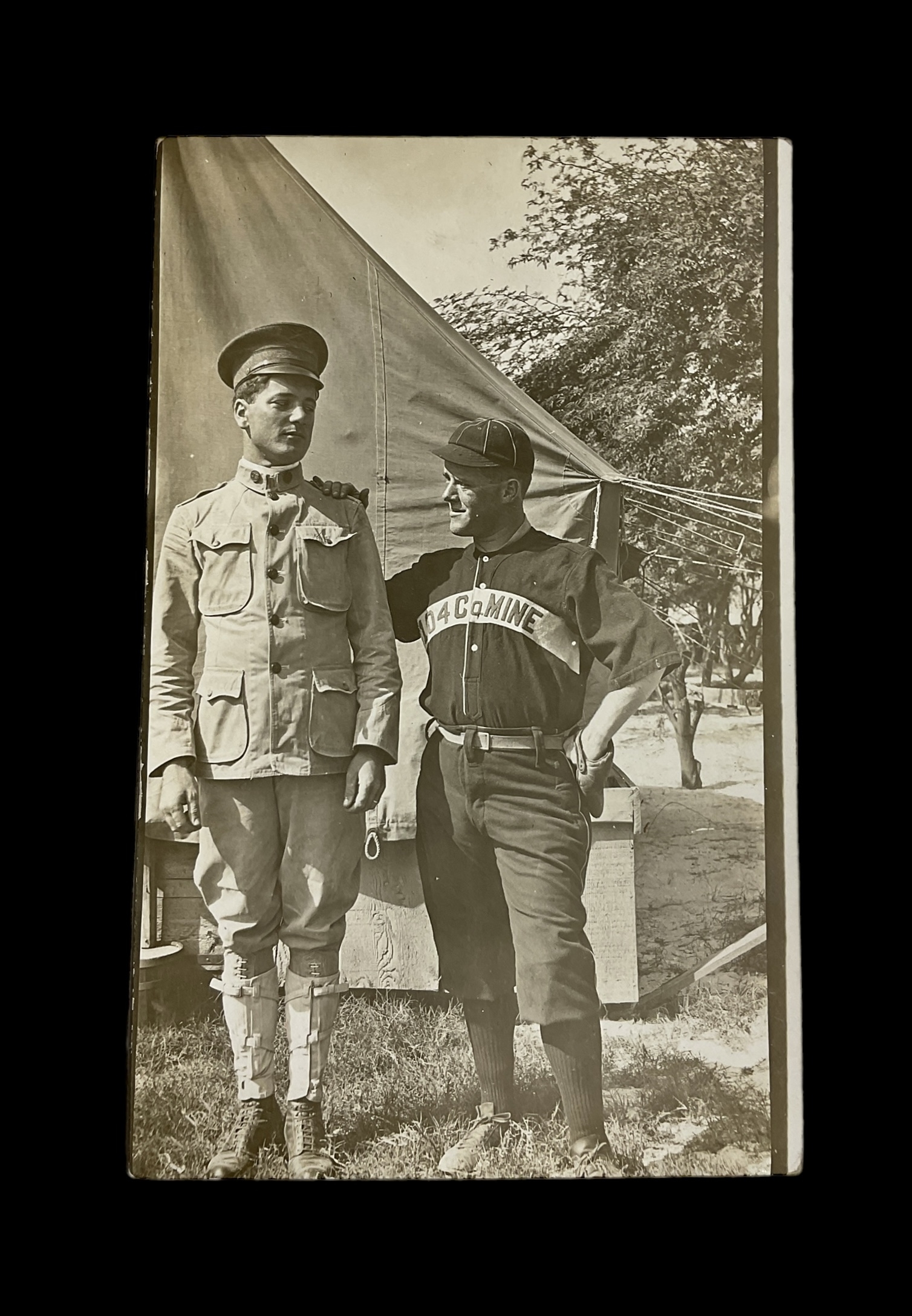 Antique Baseball Player And Army Soldier 104th Company Mine Team WWI. In good condition. It is approx. 5 3/8” by 3.25”.