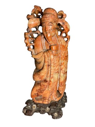 Antique Chinese Carved Stone Wiseman. 4.25”. Baseball is there for scale, not included in lot.