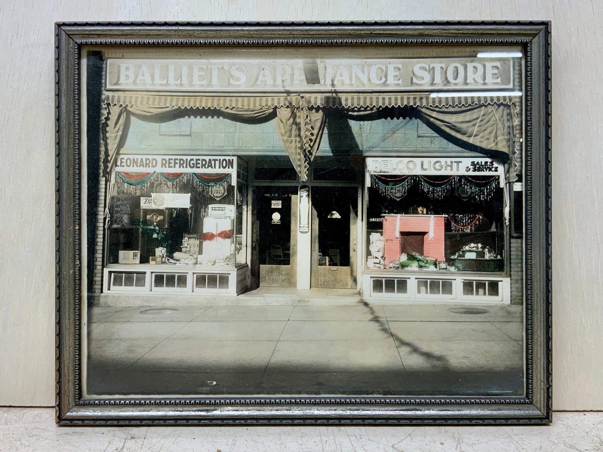 Antique Colorized Photo Balliet’s Appliance Store, measures 8.5” x 11.”
