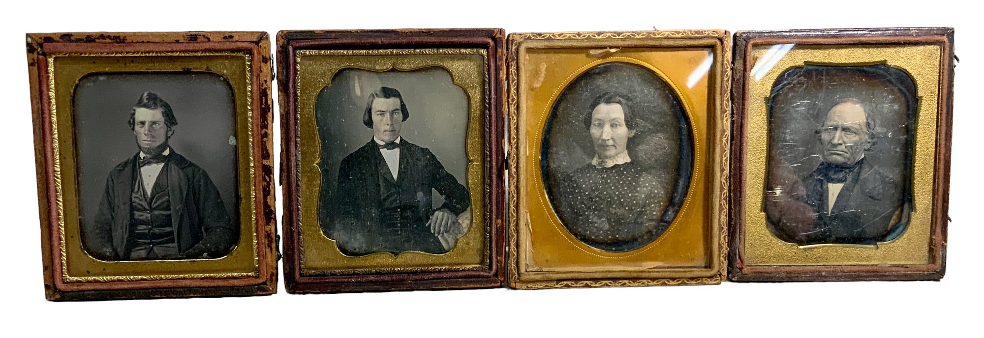 Antique Daguerreotypes Another Lot Of Four Portraits. All are missing their covers. All approx. measure 3.75” by 3.25”.