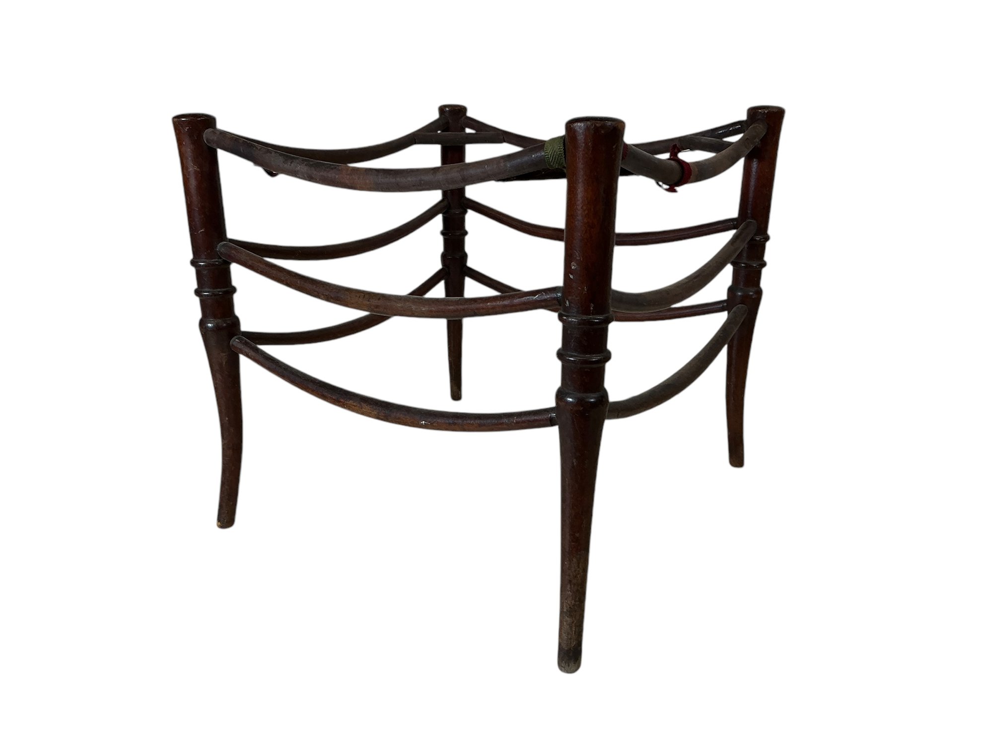Antique Egyptian Revival Period Foot Stool Frame. In fair used condition, it needs to be recaned and has minor wear, please see photos. It is approx. 15” square by 14.5” tall.