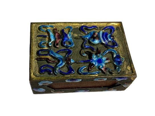 Antique Enamel And Brass Or Bronze Matchbox. 2.5” long. probably, brass or bronze, n0