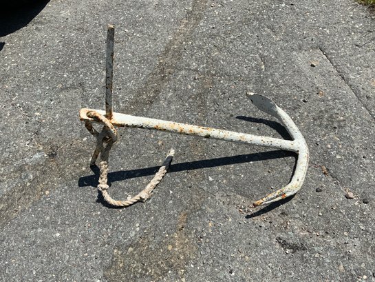Antique Iron Anchor In White Paint. It measures 21.5” long by 13” inches wide.