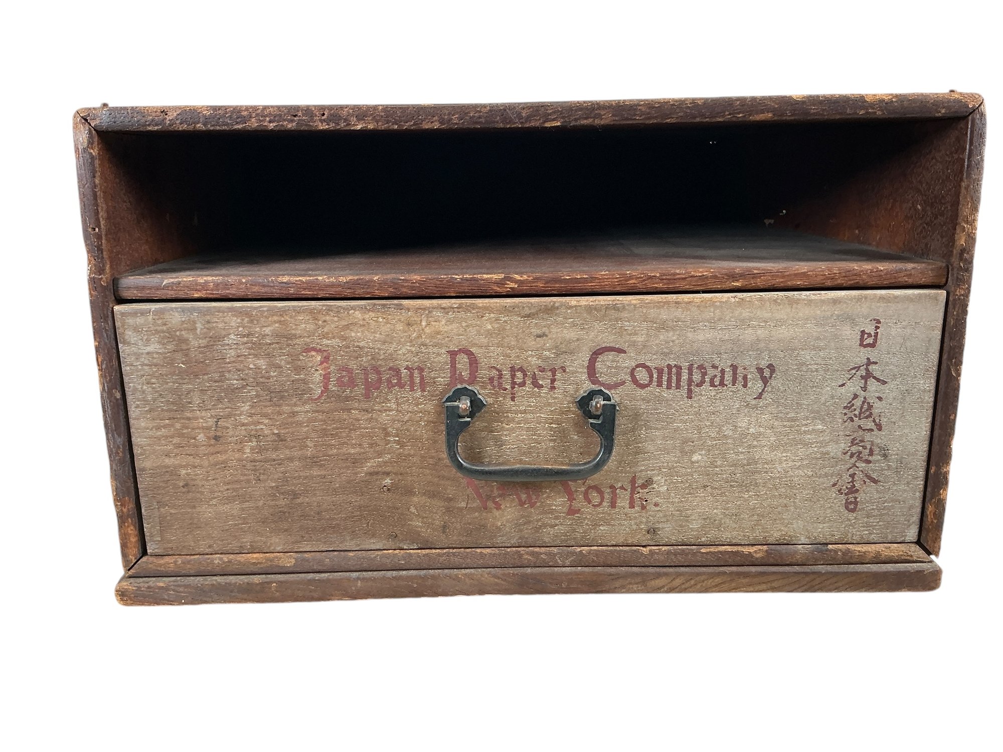Antique Japan Paper Company Wooden Box. In good used condition. It is approx. 16.5” by 13.75” by 8.”