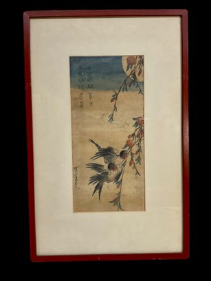 Antique Framed Japanese Print, this has two small holes, see pictures. Measures 14”x 9.25”.