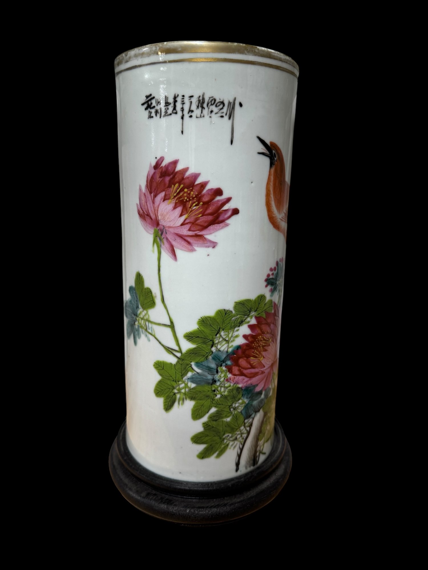 Antique or Vintage Asian Hat Stand Porcelain Vase. Measures 11.25" tall x 5" diameter. It's in very good condition, the plinth is included.