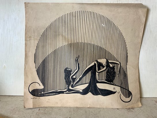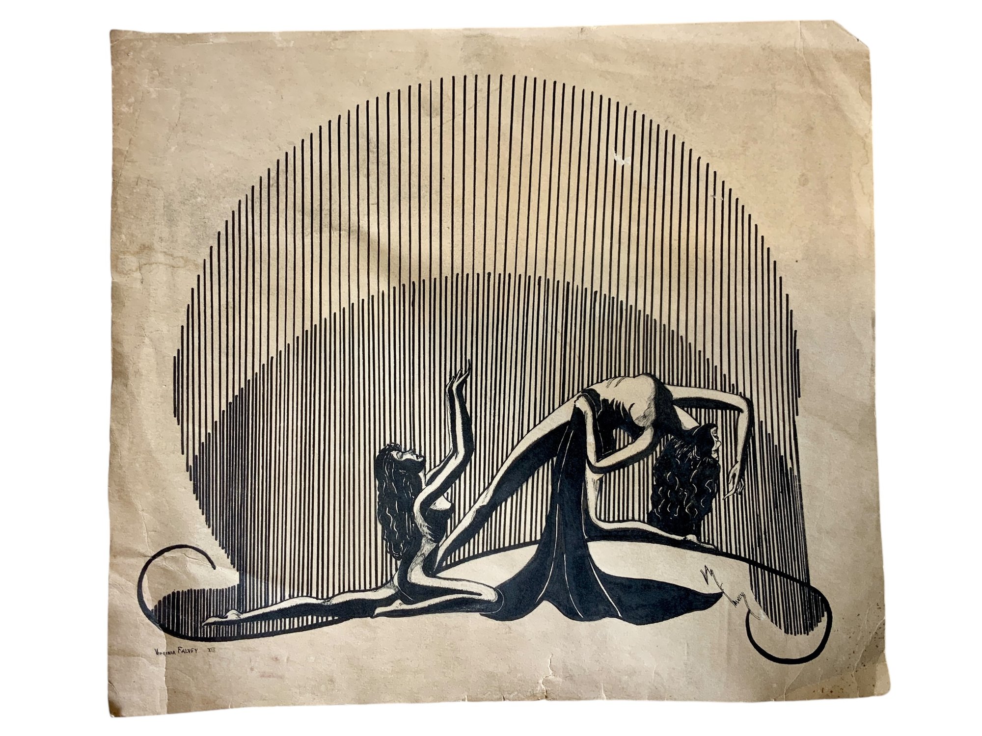 Antique Pen And Ink Illustration Signed Virginia Falvey, measures 12” x 14.”