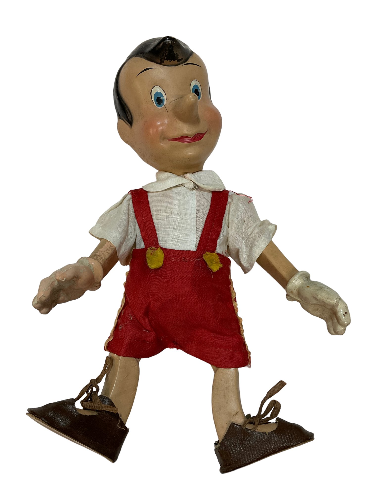 Antique Pinocchio Doll. Some areas of wear, see pictures. Approximately 12” long. Baseball is there for scale, not included in lot.
