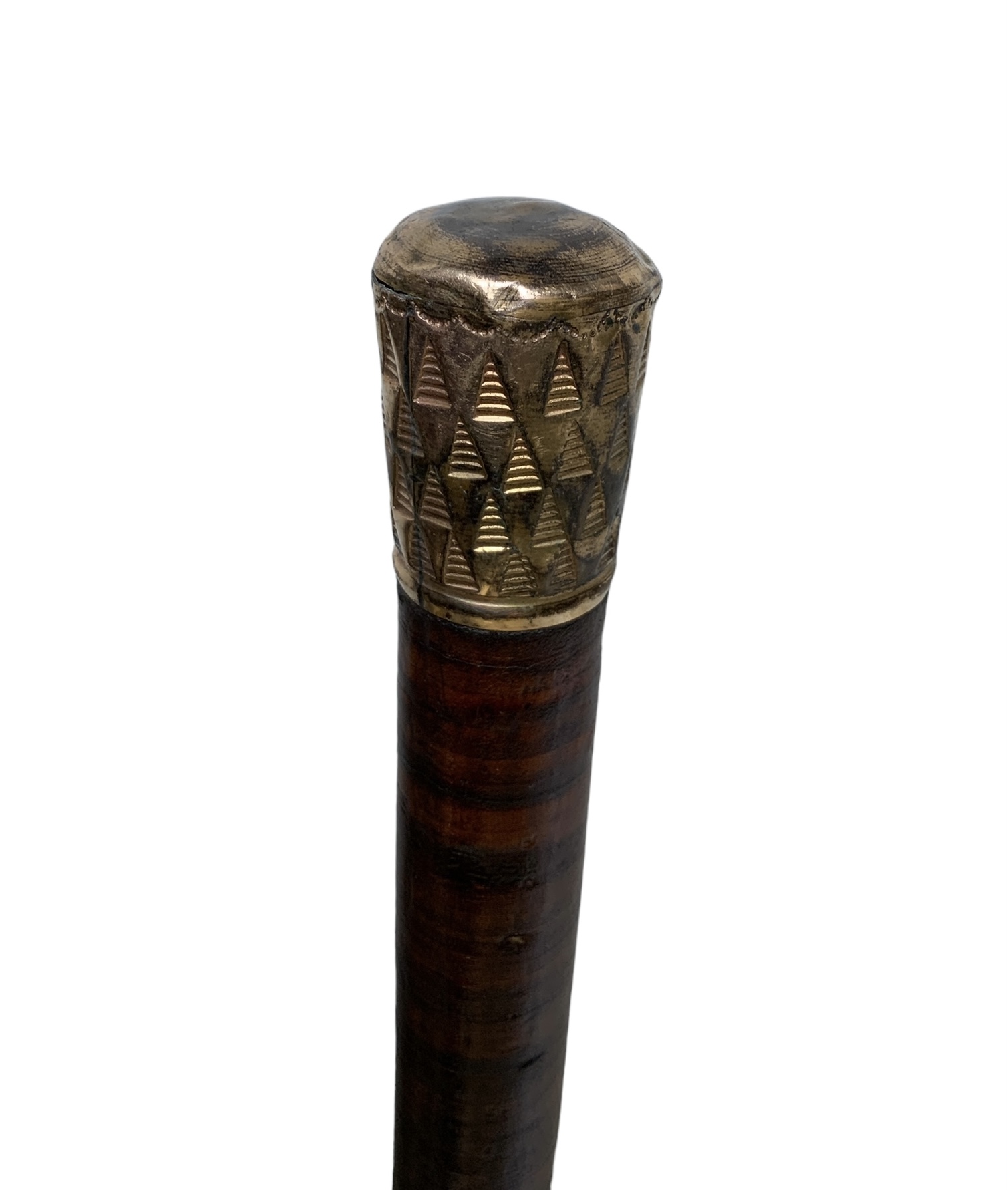 Antique Stacked Leather Cane With Gold Plated Handle. In good used condition. It is approx. 33” long.
