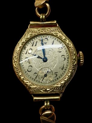 Art Deco 1928 Elgin Lady’s Wrist Watch, this has a very handsome watch face and beautifully engraved case. It is gold filled, not currently running. There is a hinge that is also partly broken where the back opens up, see photos. This is likely just good for parts or a project, but like we said, the engravings are very beautiful.