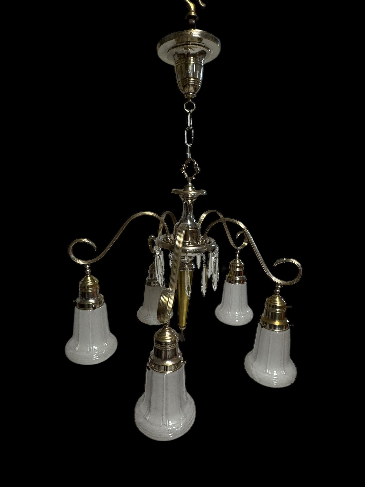 Art Deco Hanging 5 Fixture Light. This fixture is unwired.