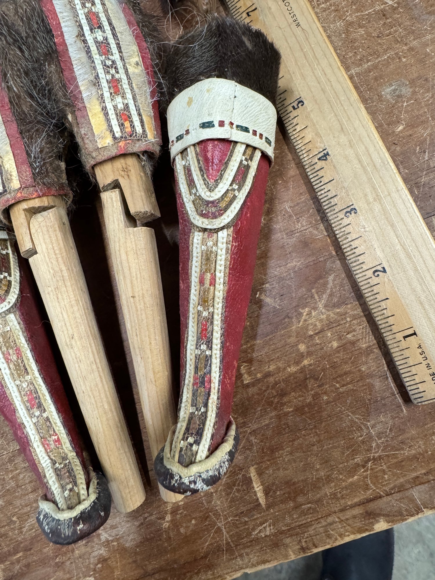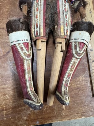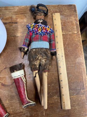 Native American ? folk Art doll Hand Made Beaded and Hand Sewn Leggings. We haven't quite figured this one out yet, the hand sewn and original clothing, appear to be authentic, but the doll is not a style of N.A. we've ever seen. Being sold as is, you be the judge. See photos for condition.