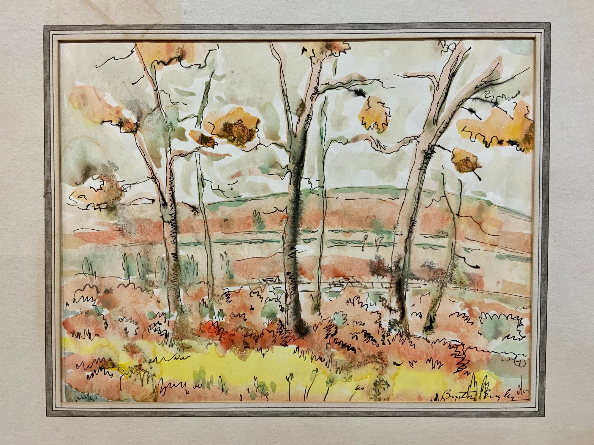 Autumnal Painting Signed Burton/Benton Engley? Measures 7.5 x 9.5 inches.
