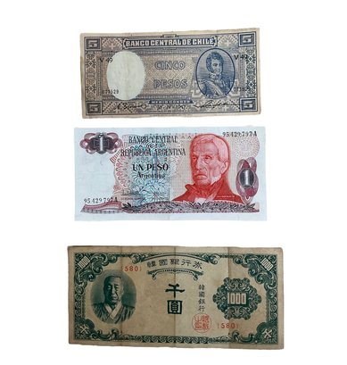 Bank Of Korea 1000 Won Republica Argentina 1 Peso Chile Cinco Peso. Please see photos, generally good condition.
