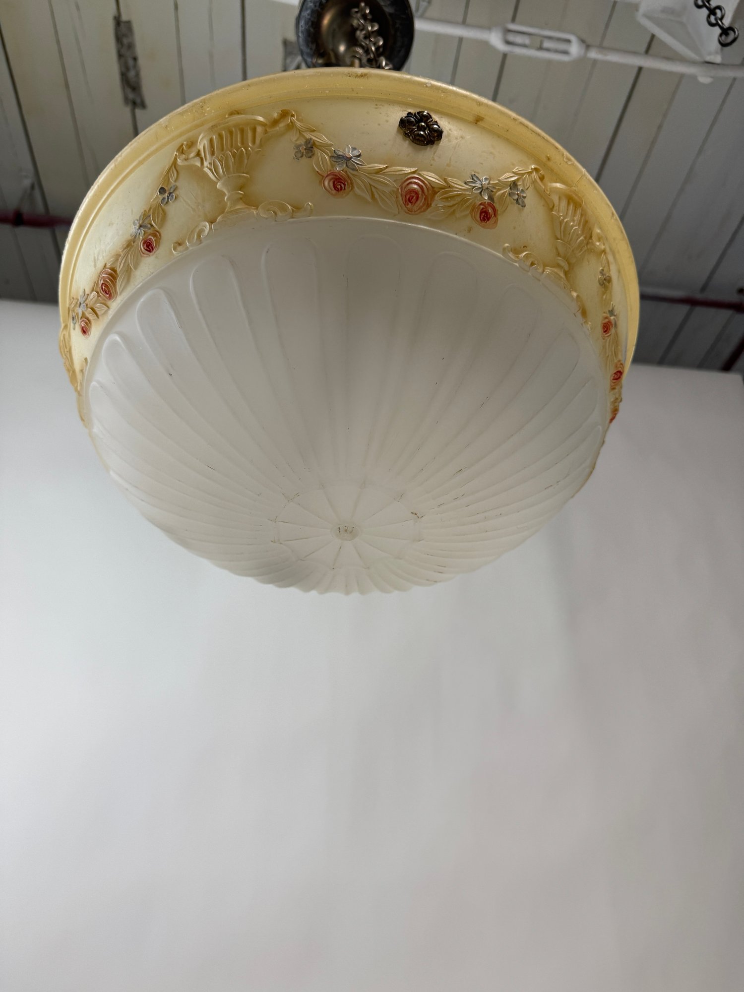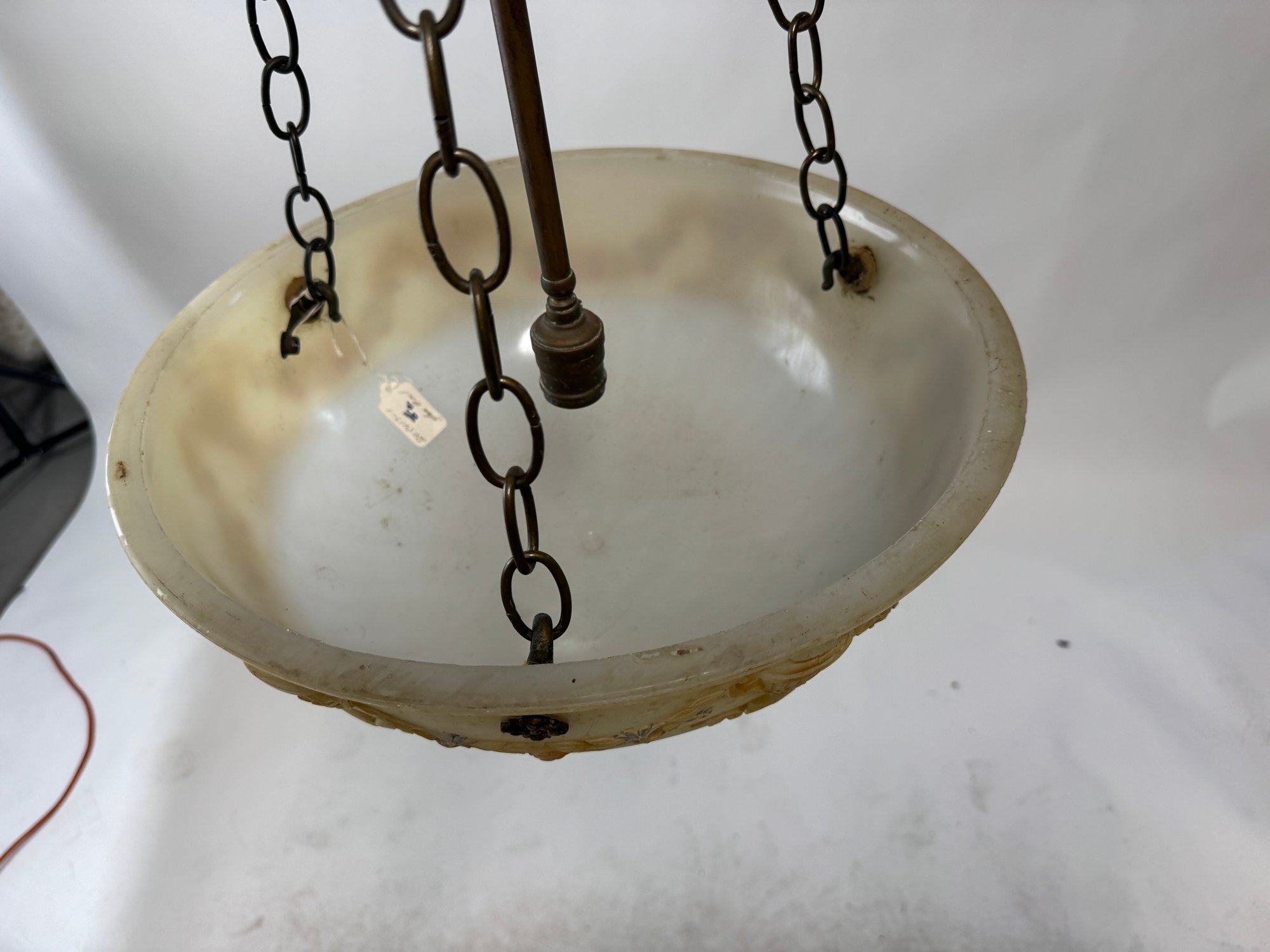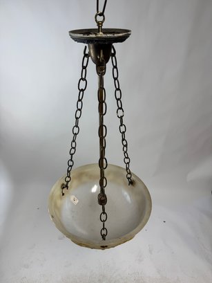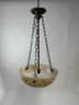 Beautiful Art Deco Multi-Color Glass Bowl Lighting Fixture in very good condition. 29" drop x 16" diameter.