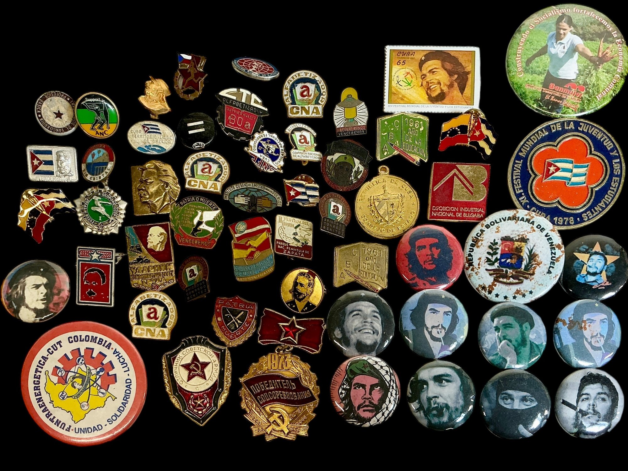 Big Batch Of Communist, Cuba, And Central American Pins, 1970s-modern, crazy collection! Vast majority are under 2”