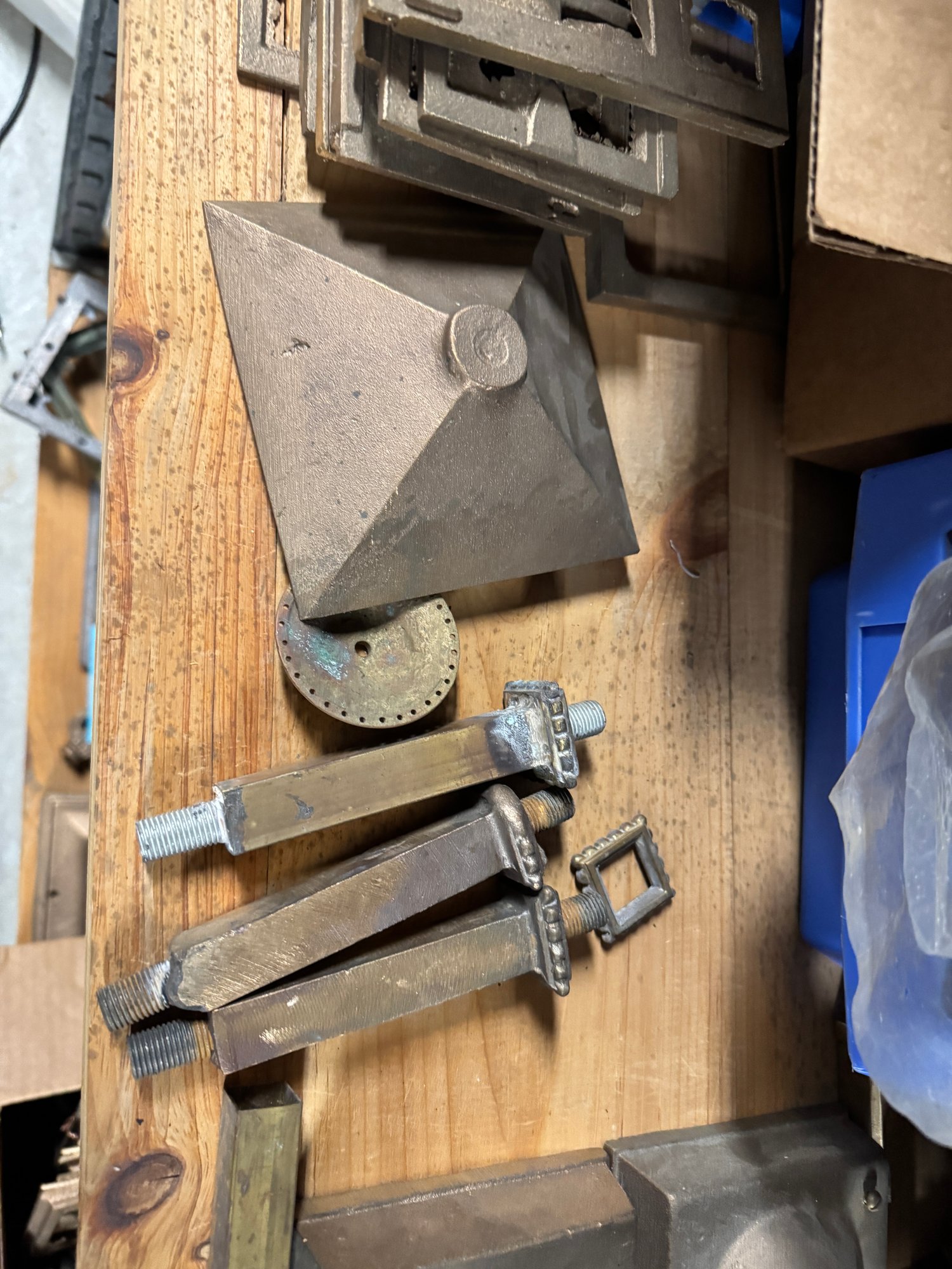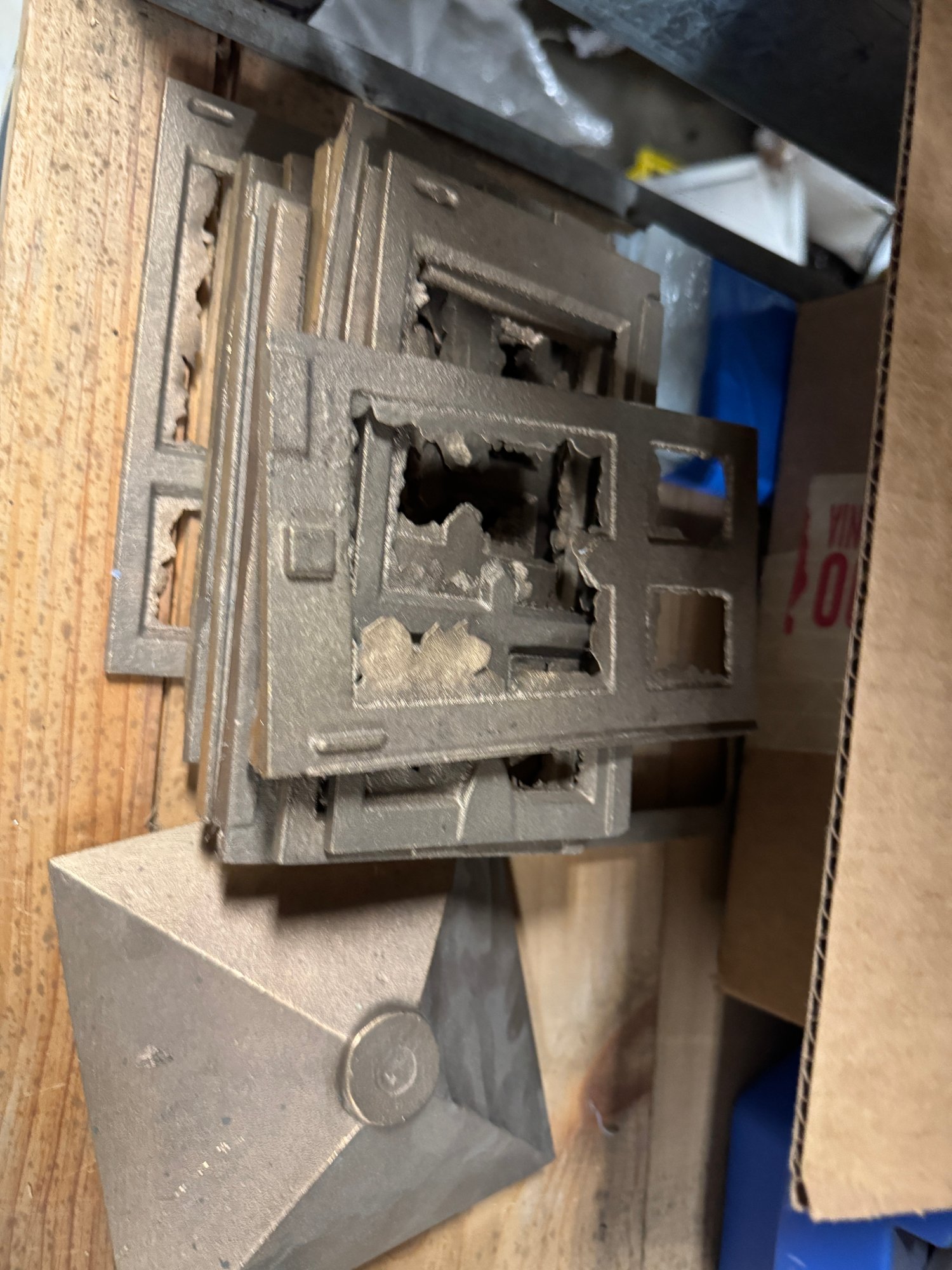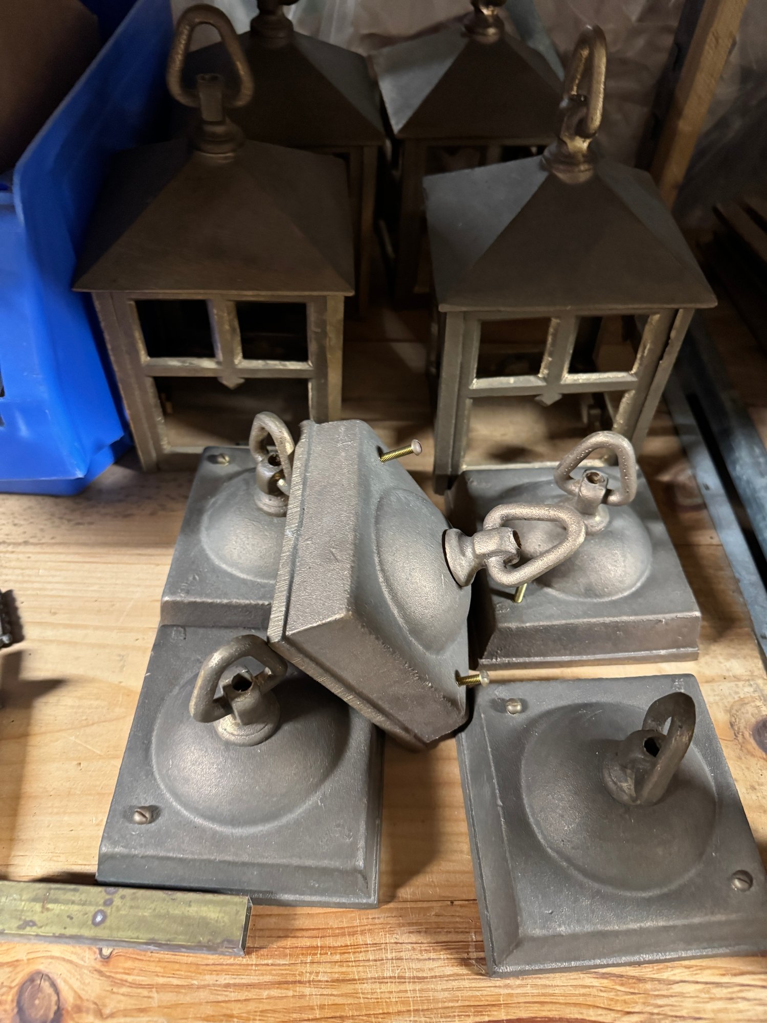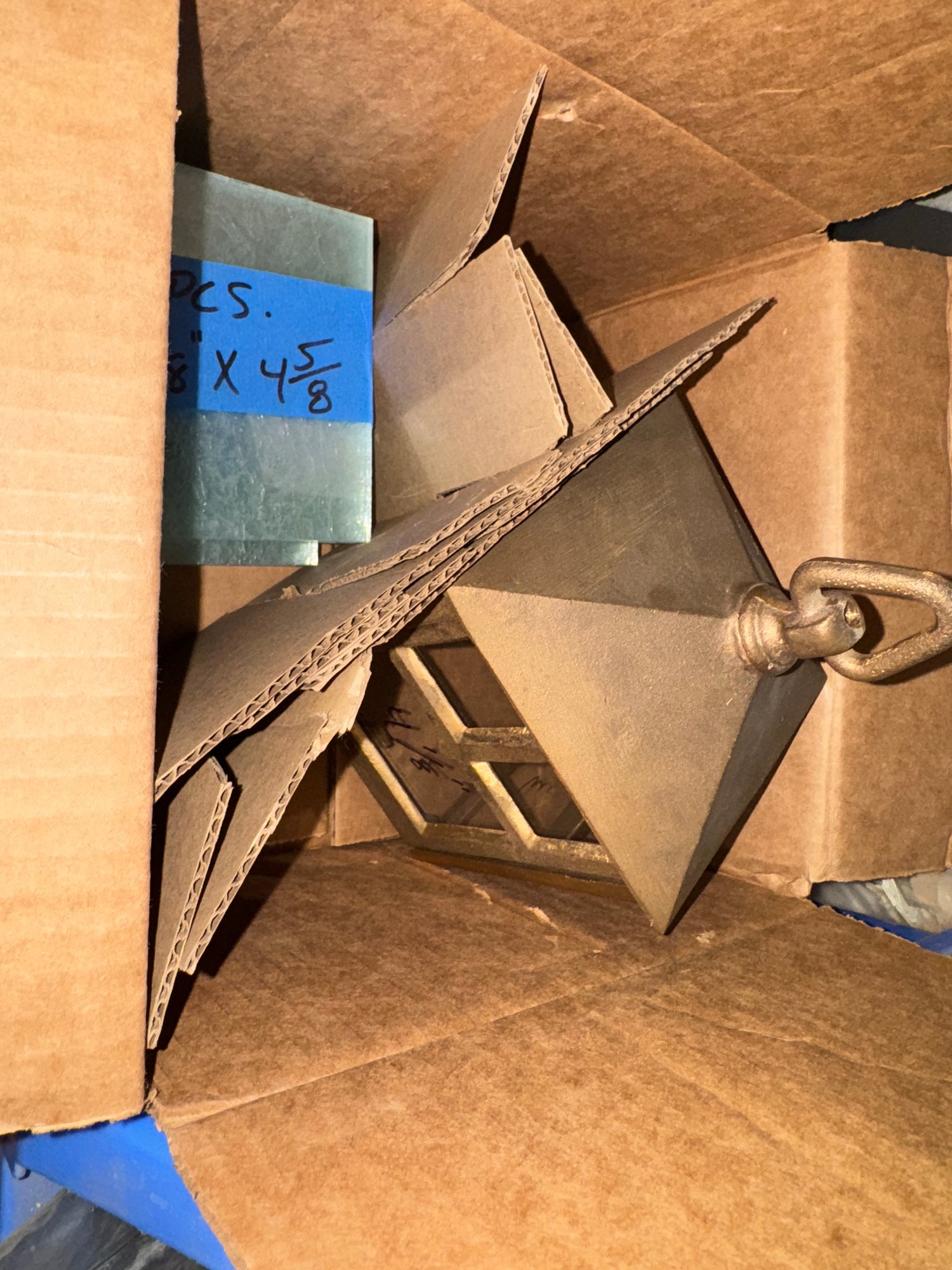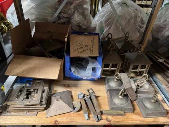 Cast Bronze Lanterns Unmade - We think there's 5 here, and the glass is in the box. However, we didn't count every piece. You get everything on this one shelf! Lantern measures 9" x 5.5"