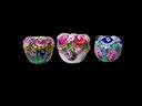 Centerpiece Floral Lamp Work Glass Beads, all approximately .75” - 1” in diameter. These were made by glass artist Amy Kuczewski and are stamped with an A at the bottom.