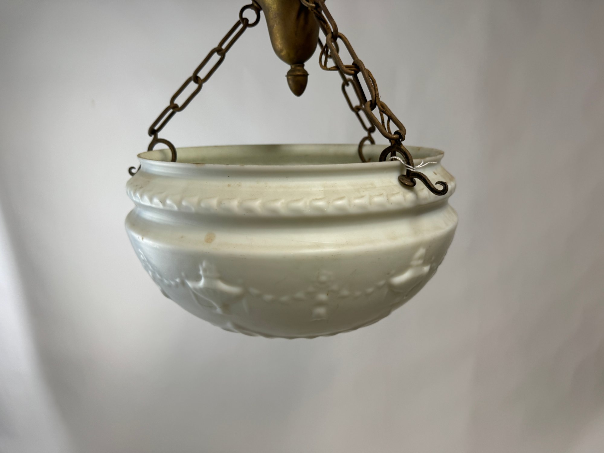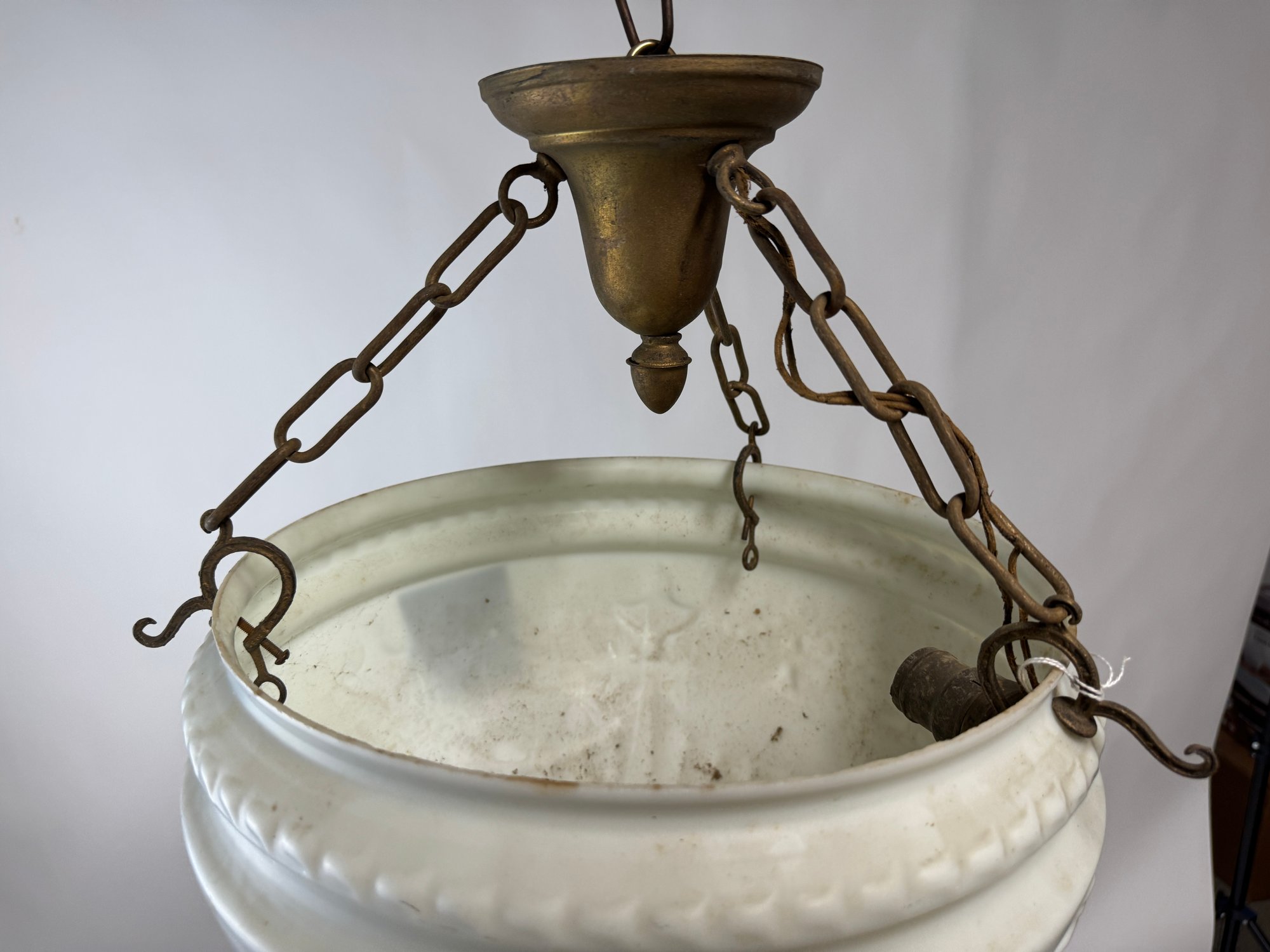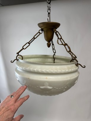 Charming white Glass Bowl Art Deco Fixture. This fixture is unwired.