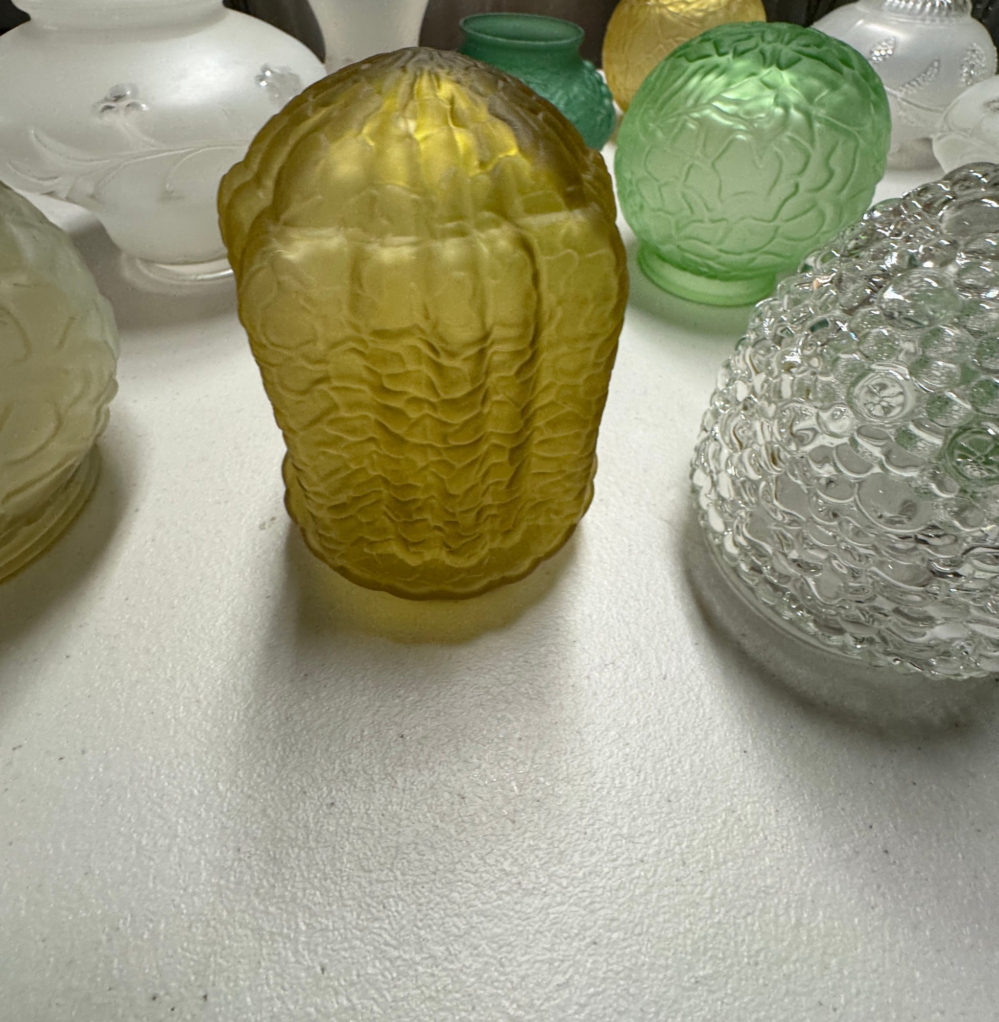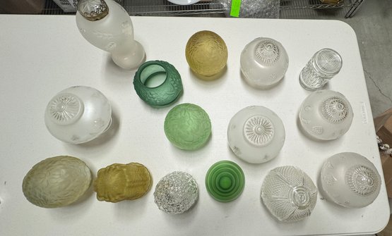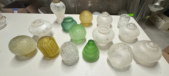 Collection of 15 Vintage Glass Shades 3" fitters. You get all the shades in the photos.