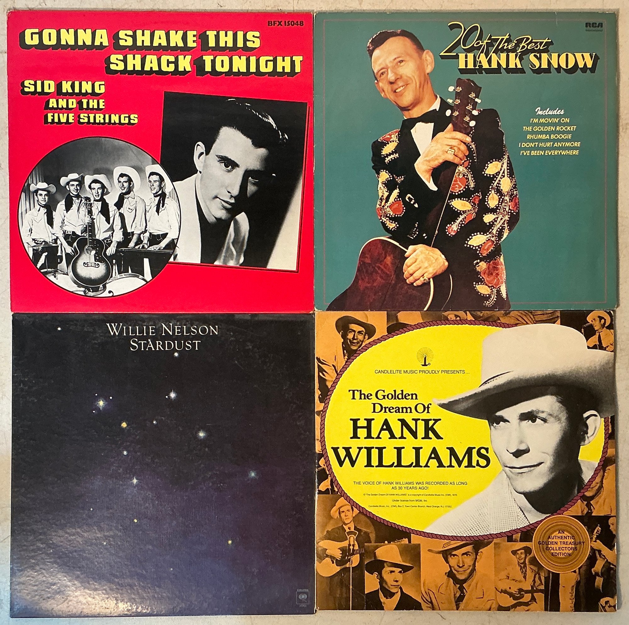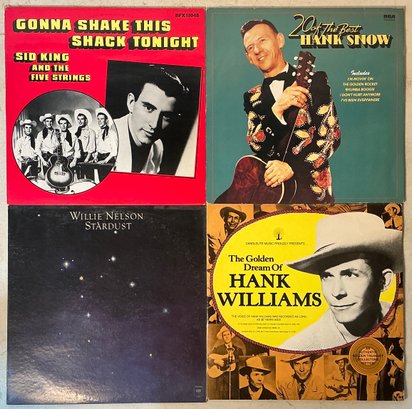 Country Albums Willie Nelson Stardust Hank Williams Hank Snow Sid King And The Five Strings. Bear Family Records BFX 15048, NL89422, Candlelite Music, Columbia JC 35305.