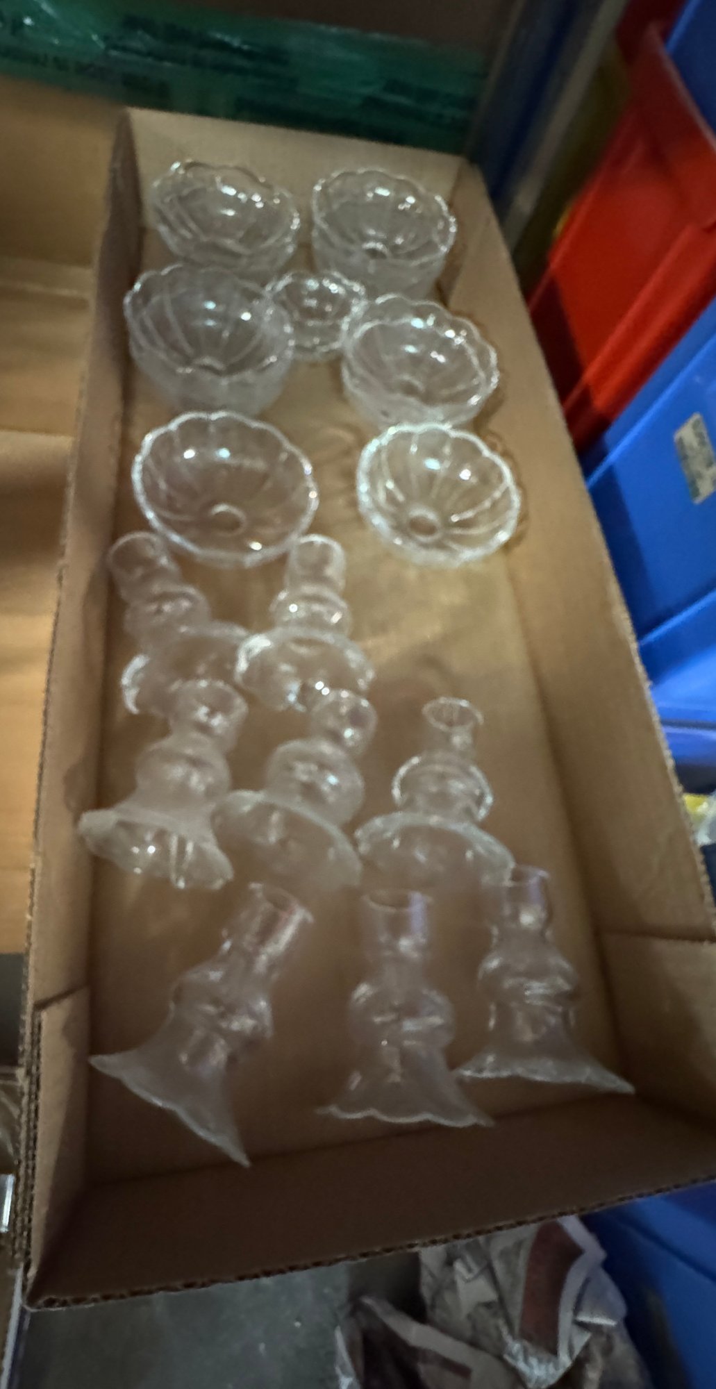 Crystal Sconce and Chandelier Parts, you get everything in the 3 boxes. See pics for description and condition. Includes arms, back plates, bobeshes, candle cups, distributors.