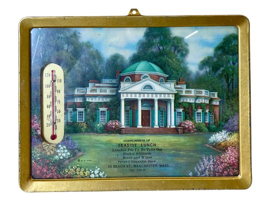 Decorative Manchester Massachusetts Thermometer In Frame, thermometer does not seem to be working. Measures 6” x 8.”