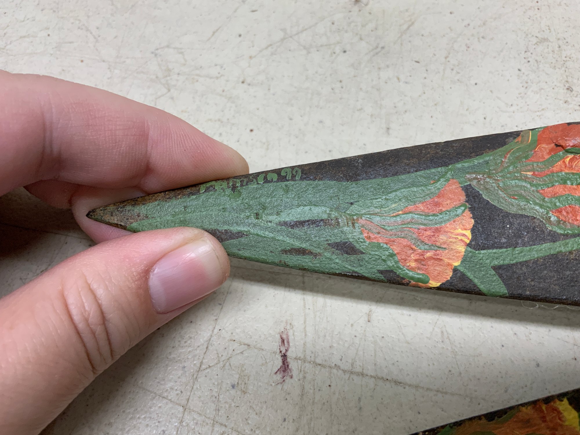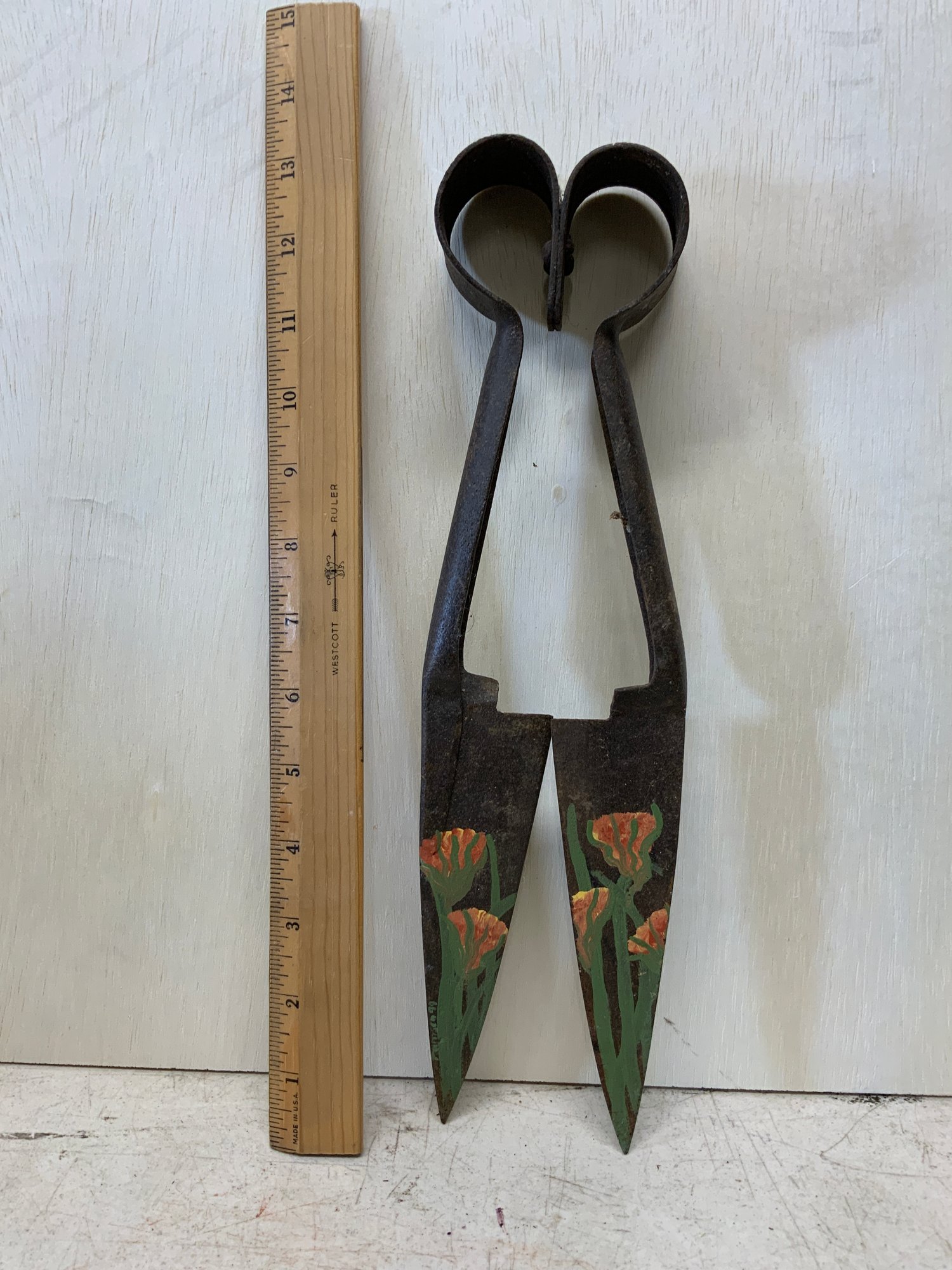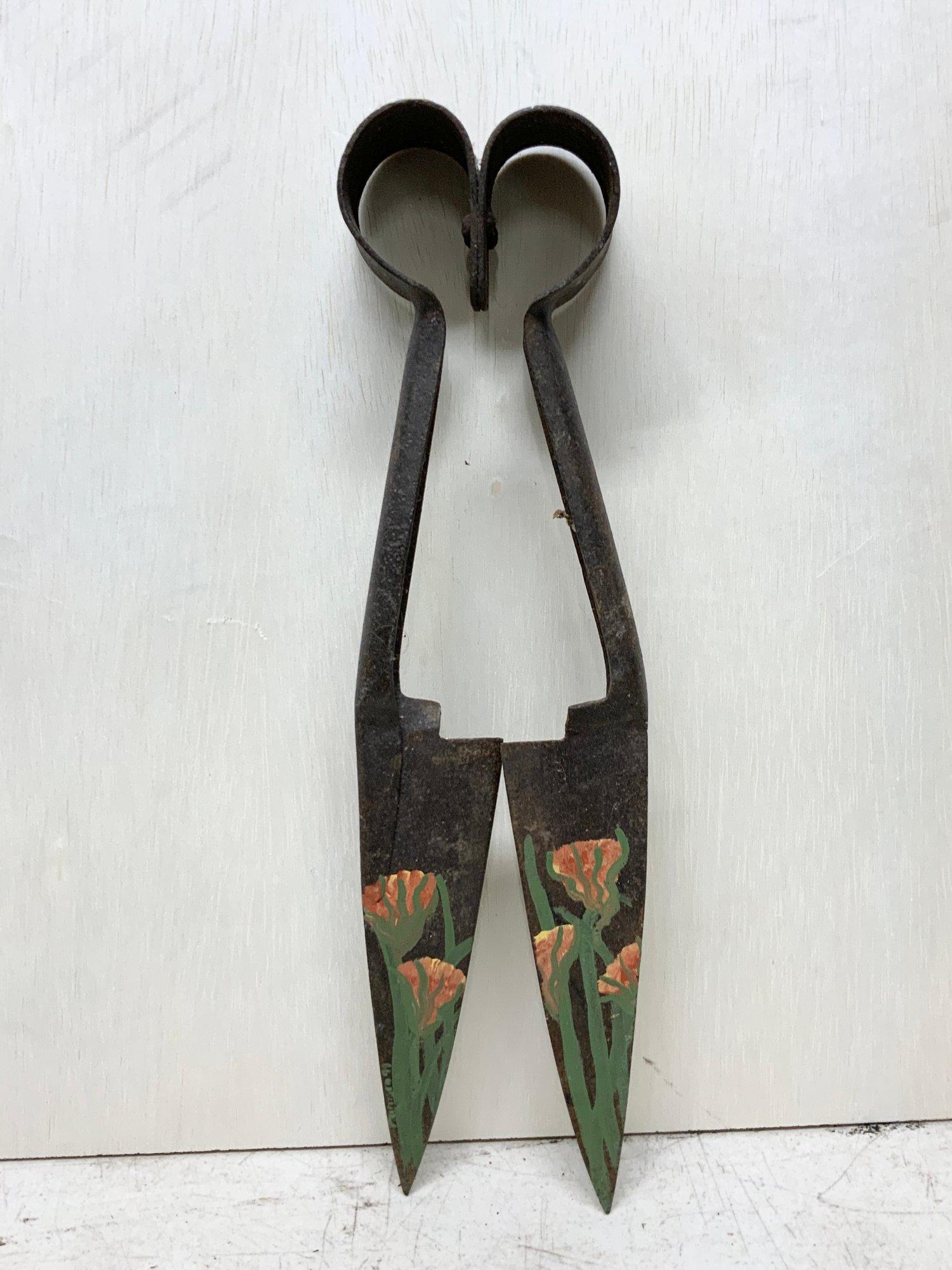Decorative Painted Folk Art Shears, Signed, measure 13.”