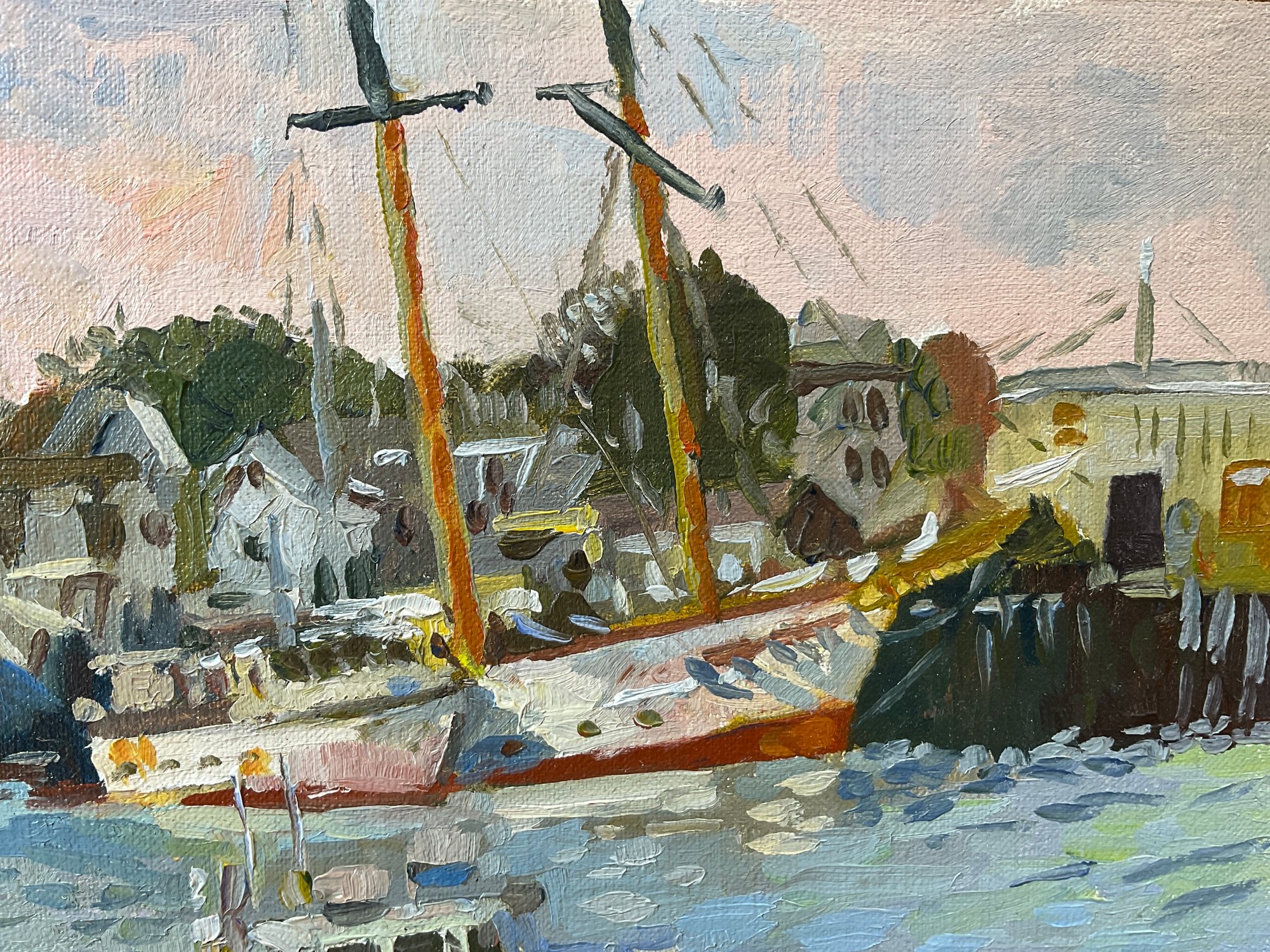 Dennis Poirier Cape Ann Artist Oil On Board Of Gloucester Harbor. In very good condition. Sight size is approx. 6” by 8”.