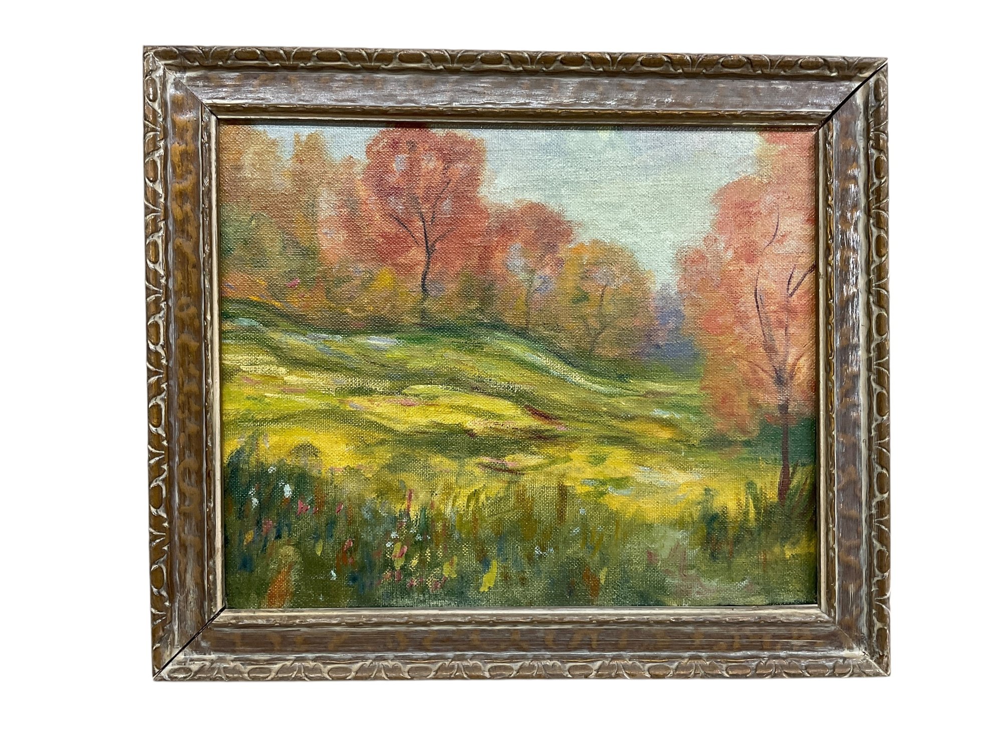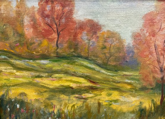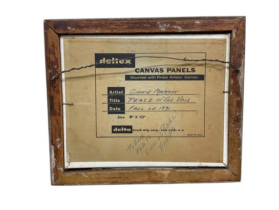 Ginnie Martin Oil On Board Peace In The Vale 1971. In good condition. Sight size is approx. 8” by 10” and frame size is approx. 10” by 12”.