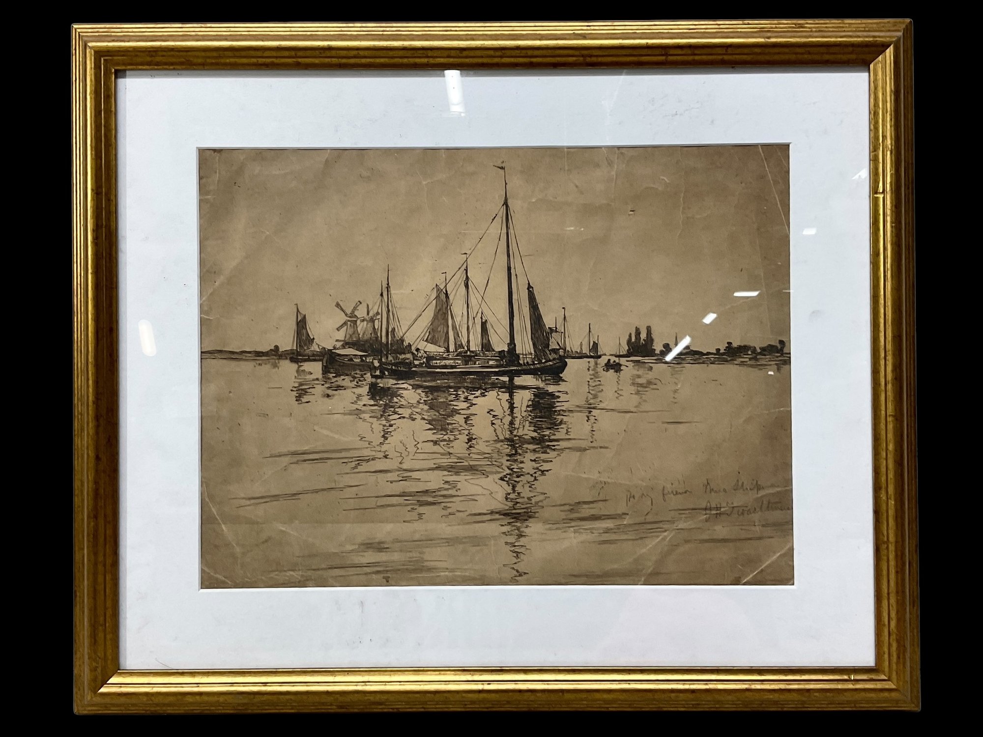 Pencil Signed Antique Lithograph John Twachtman (1853-1902), the lithograph itself has some evidence of wrinkles and a small puncture (see photos), but is very old and signed in pencil, βto my friend Mrs. Shipman, JH Twachtman.β Sight size is 12β x 15.5.β