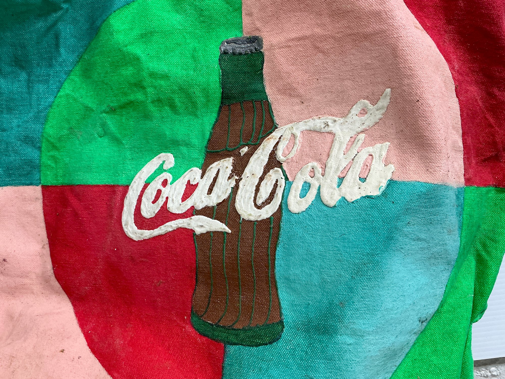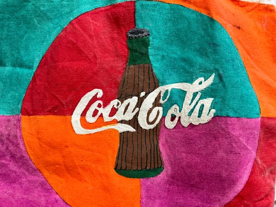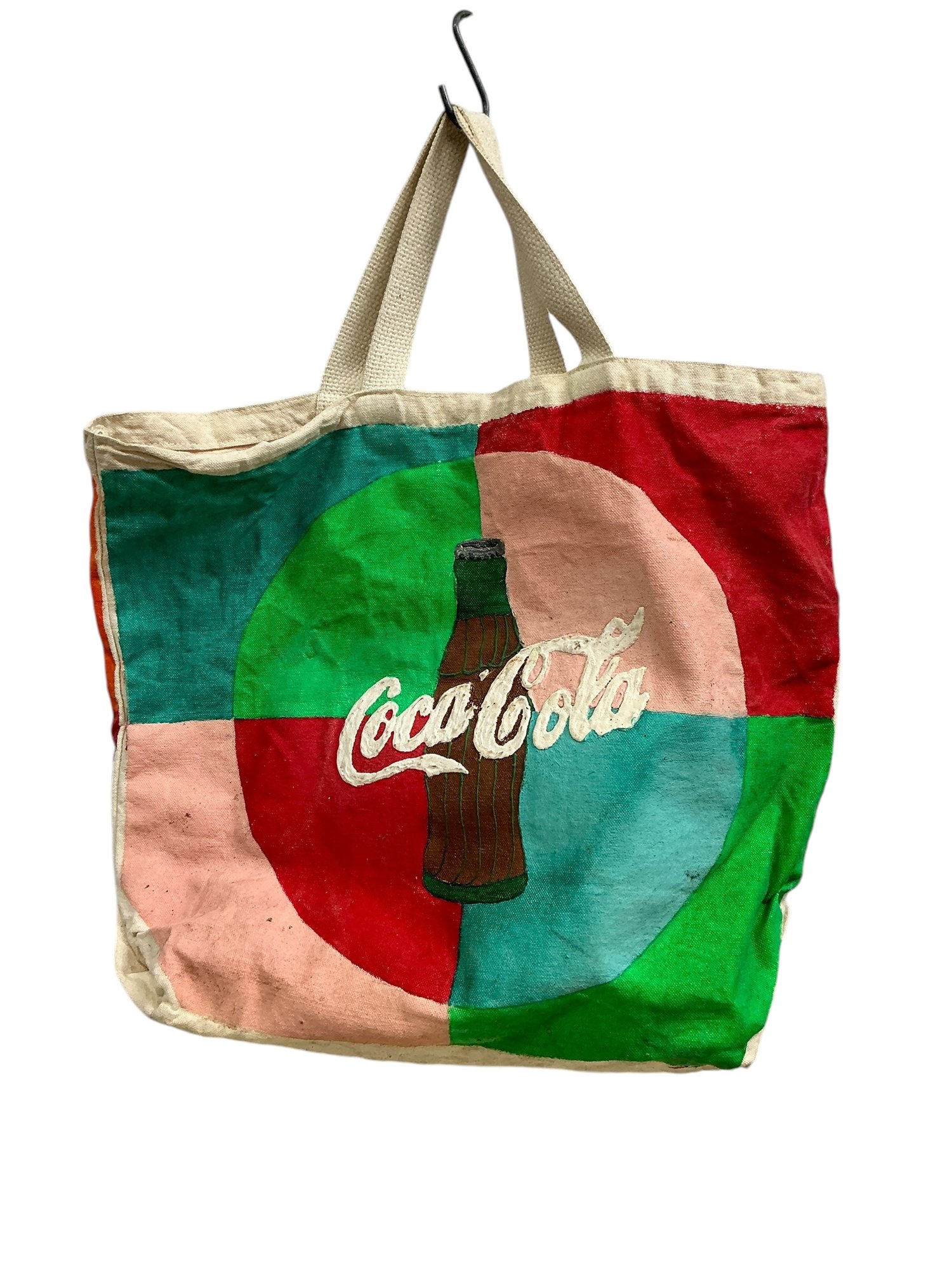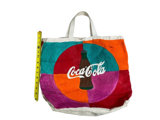 Fabulous Vintage Home Made Coca Cola Canvas Tote Bag. In good used condition but has some light dirt and dust soiling, please see photos. It is approx. 14” tall excluding handle and is 17” wide.