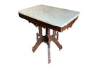 Fancy Victorian Marble Top Side Table. In good condition it is approx. 28” by 20” by 30”.