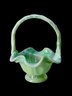 Fenton Jadeite Opalescent Glass Basket, measures 6.5” tall, no damage.