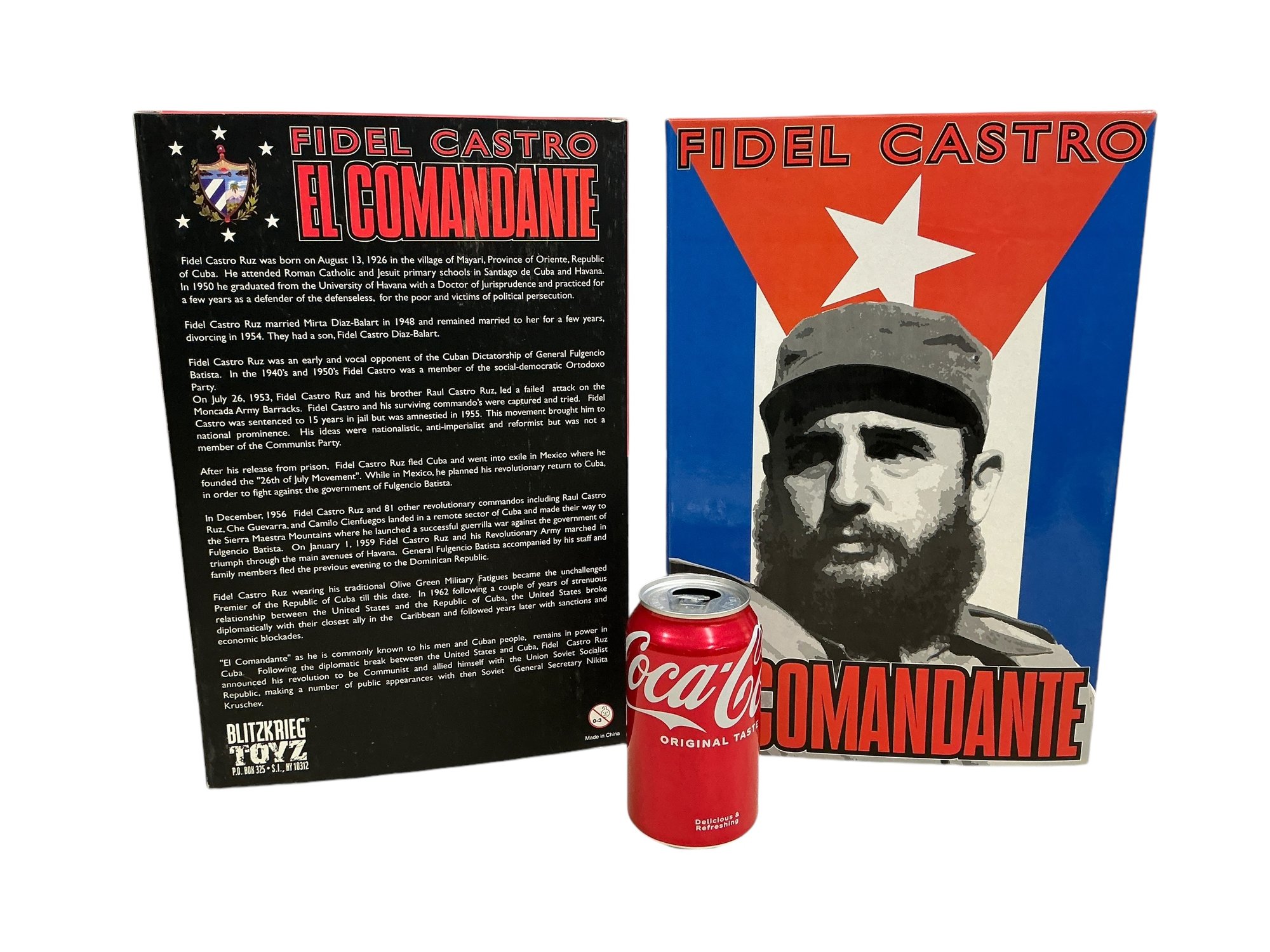 Fidel Castro El Commandante Action Figure Toy Made By Blitzkreig Toyz . In good unopened condition. The box is approx. 13.5” by 9” by 3.”