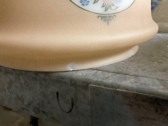 Five Antique Glass Ceiling Mount Shades. In good used condition with minor wear and some small chips. Largest is approx. 16” in diameter.
