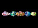 Five Large Lamp Work Glass Beads Intricate Designs, largest measures 1.5” wide. Bold vibrant colors, each hand made and one of a kind.