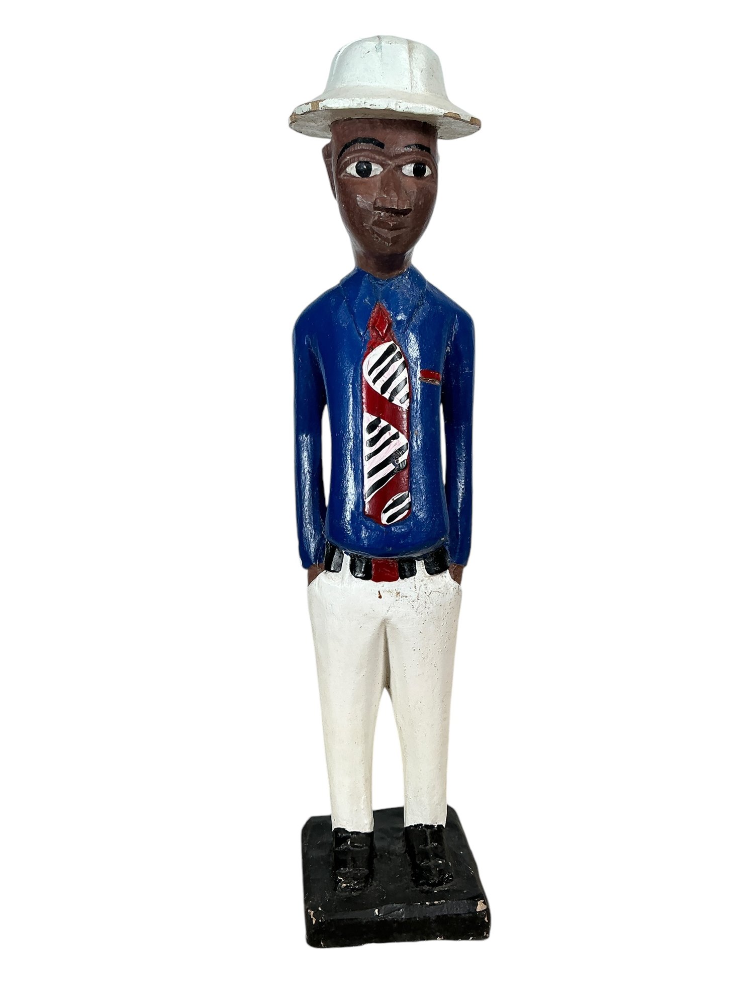 Folk Art Carved Figure Of An African Gentleman. In good condition. It is approx. 14” tall.