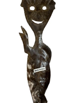 Folk Art Haitian Metal Art Signed Robert Of Fantastic Figure. In very good condition. It is approx. 45” tall.