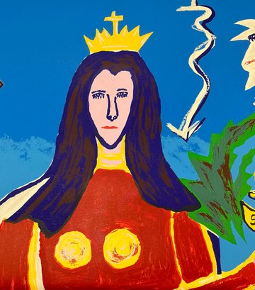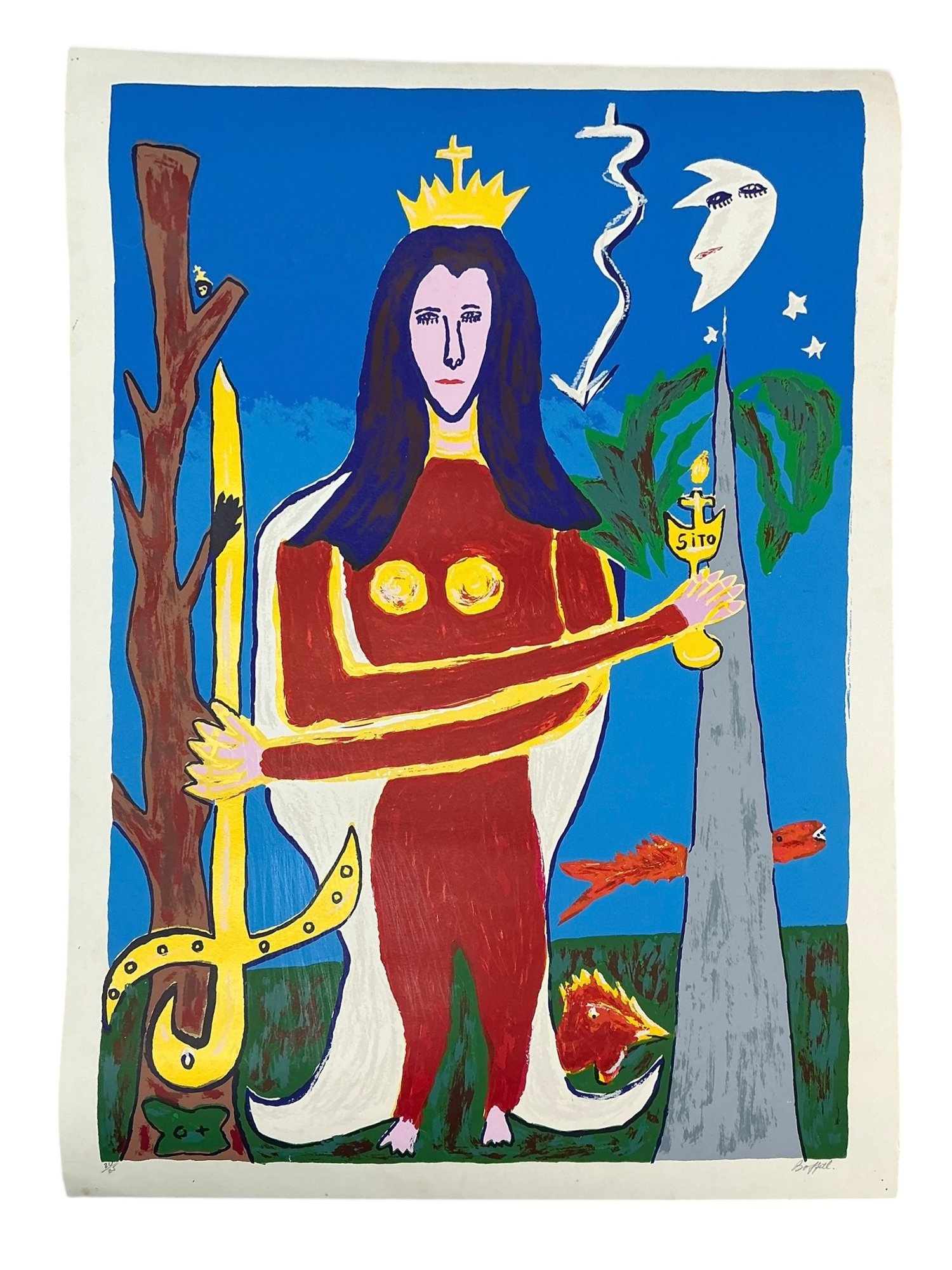 Folk Art Lithograph Of Lexica Tarot High Priestess Boffil? Seems a possible fit in terms of the work of Noel Guzman Boffil and the signature, please be the judge. In good condition but please be aware it has been rolled up for many years and will have to be flattened and framed. It is approx. 27.5” by 19.5."