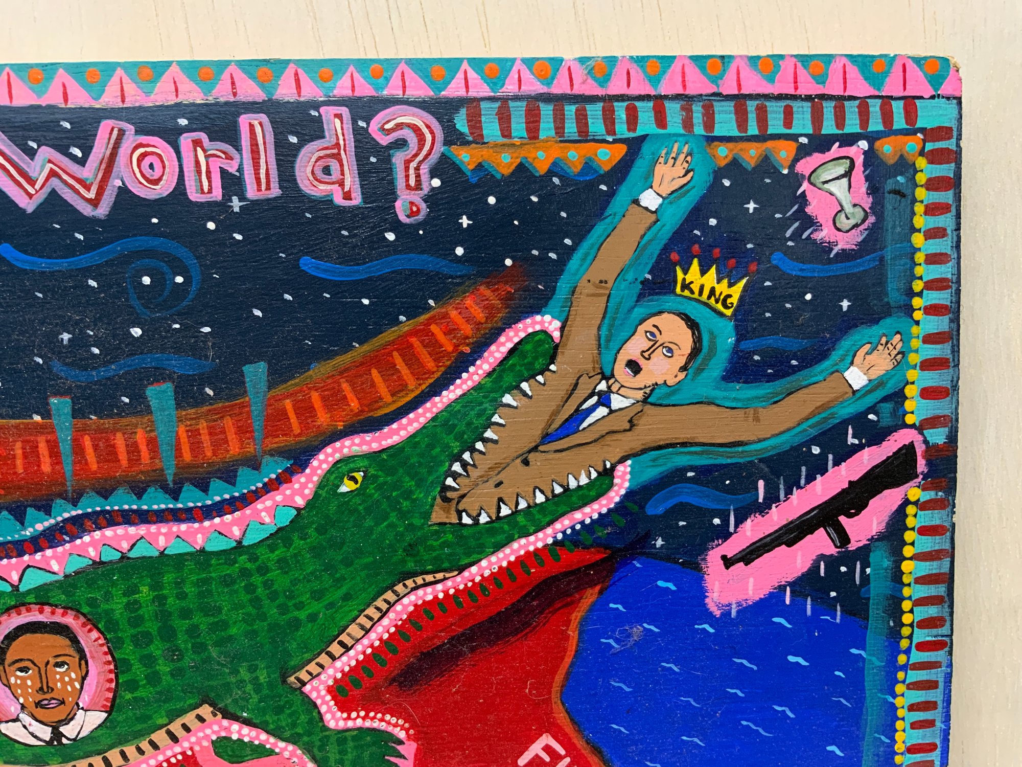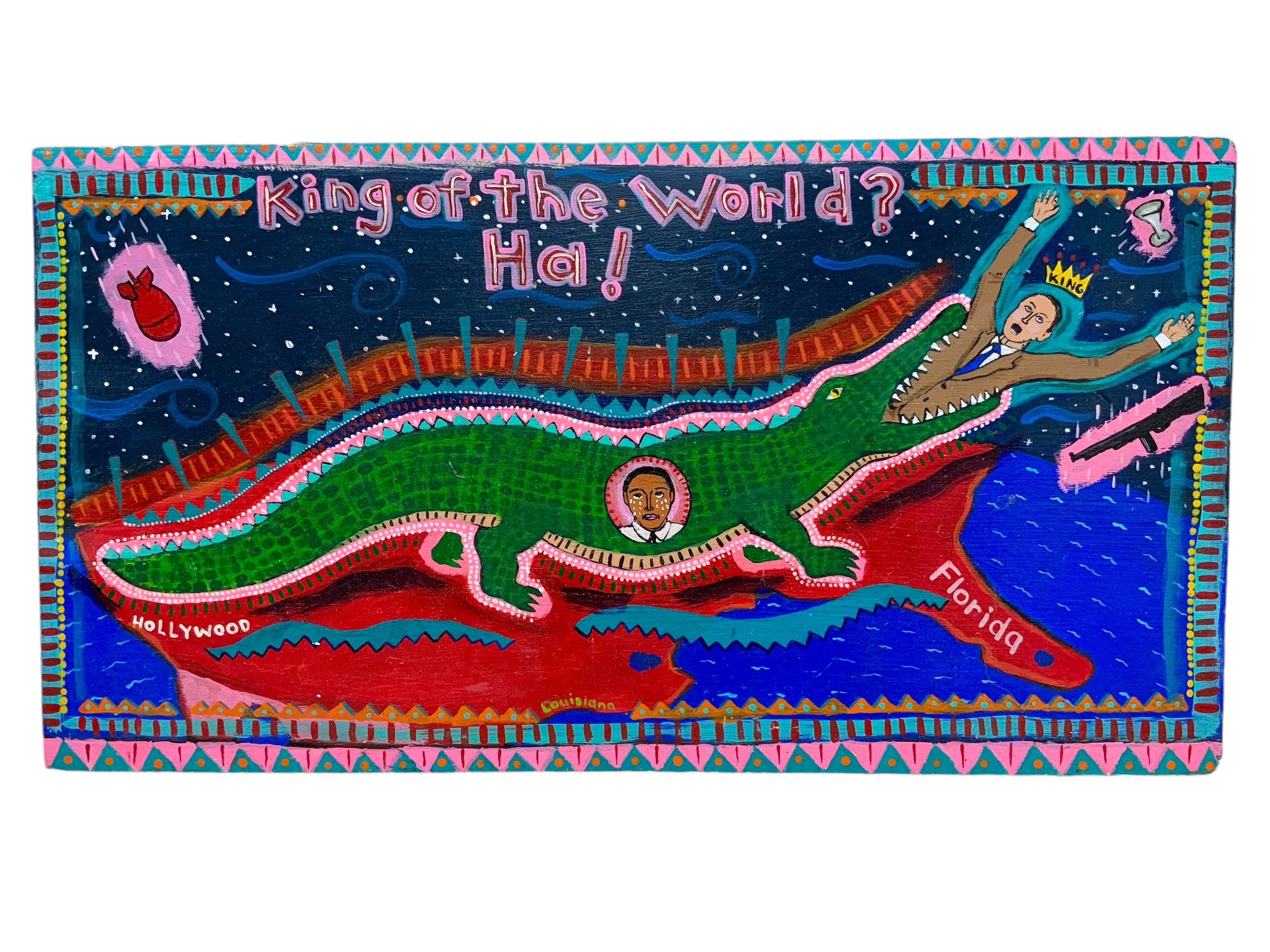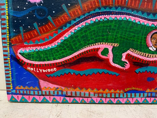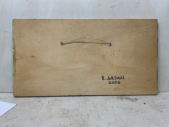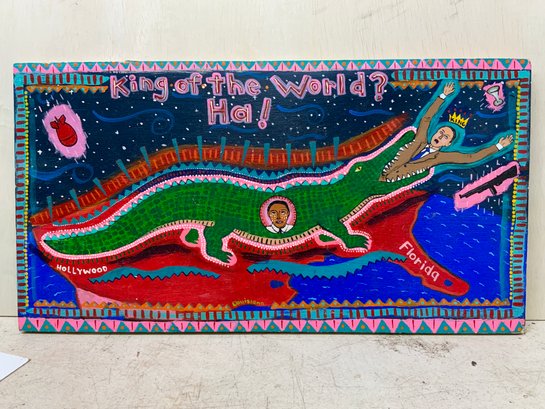 Folk Art Political Painting On Wooden Board, measures 10” x 18.5.” Signed on the back, “Jordan 2006.”