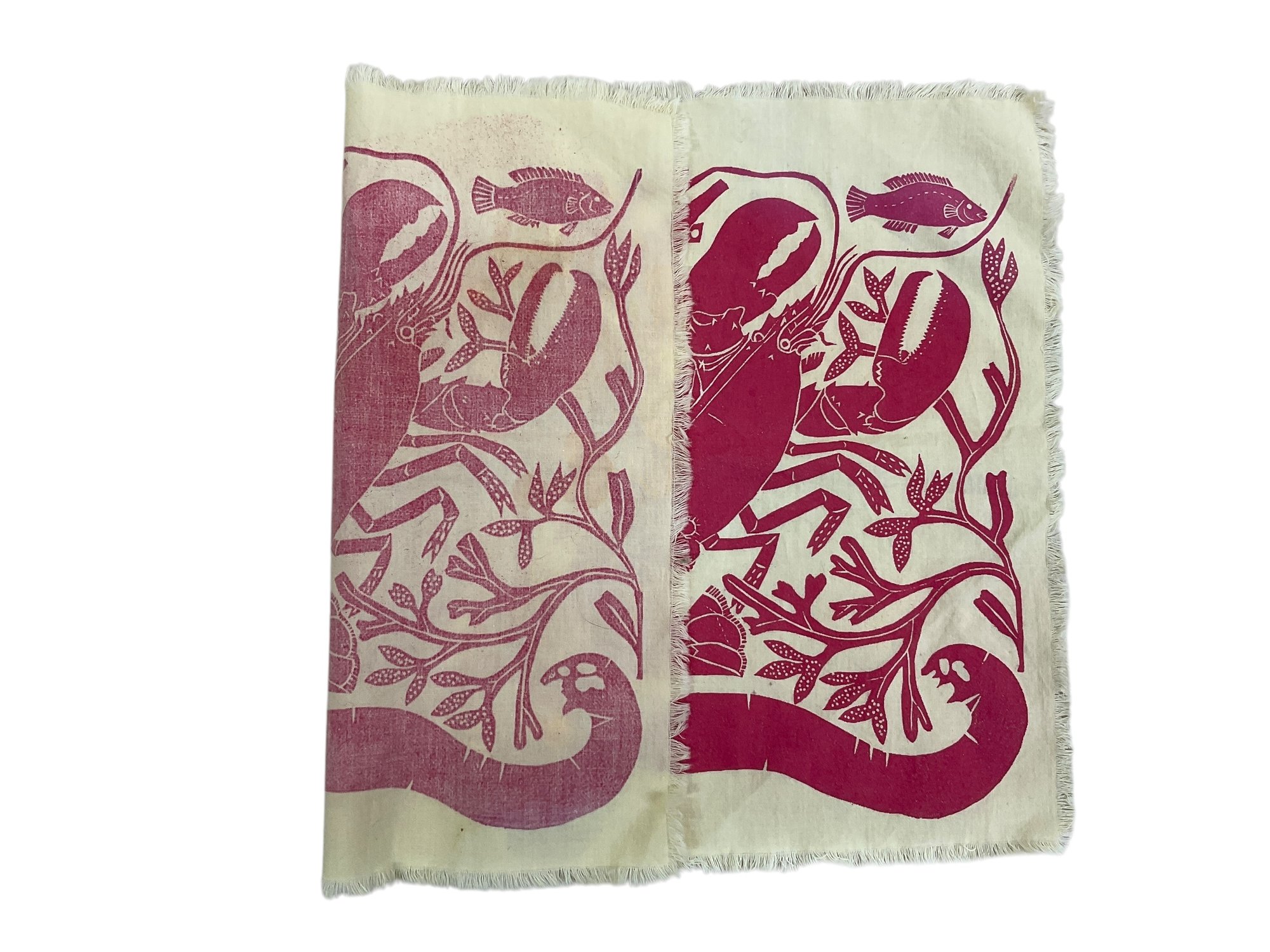 Folly Cove Affiliated Block Print Lobster Place Mat. In good condition. It is approx. 17.5” by 12.5”. Possibly by Natti but not an official juried piece.