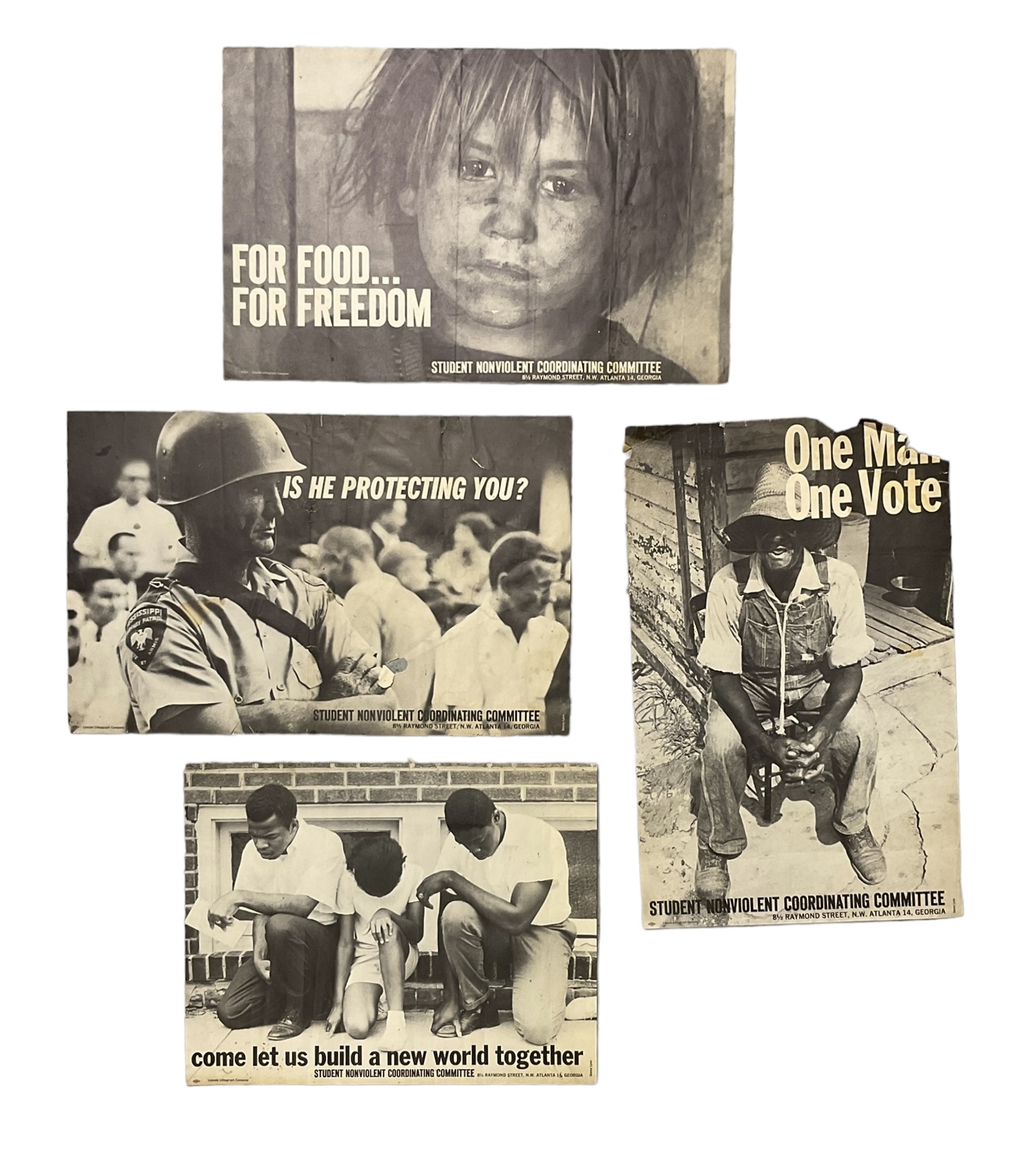 Four Student Nonviolent Coordinating Committee Posters One Man One Vote 1960s Civil Rights. All are in fair condition with various condition issues with chips tears and some wear, please see photos. Largest is approx. 14” by 22.”