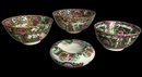 Four Vintage Chinese Porcelain Famille Rose Bowls. All in good used condition. Largest is approx. 6” in diameter.