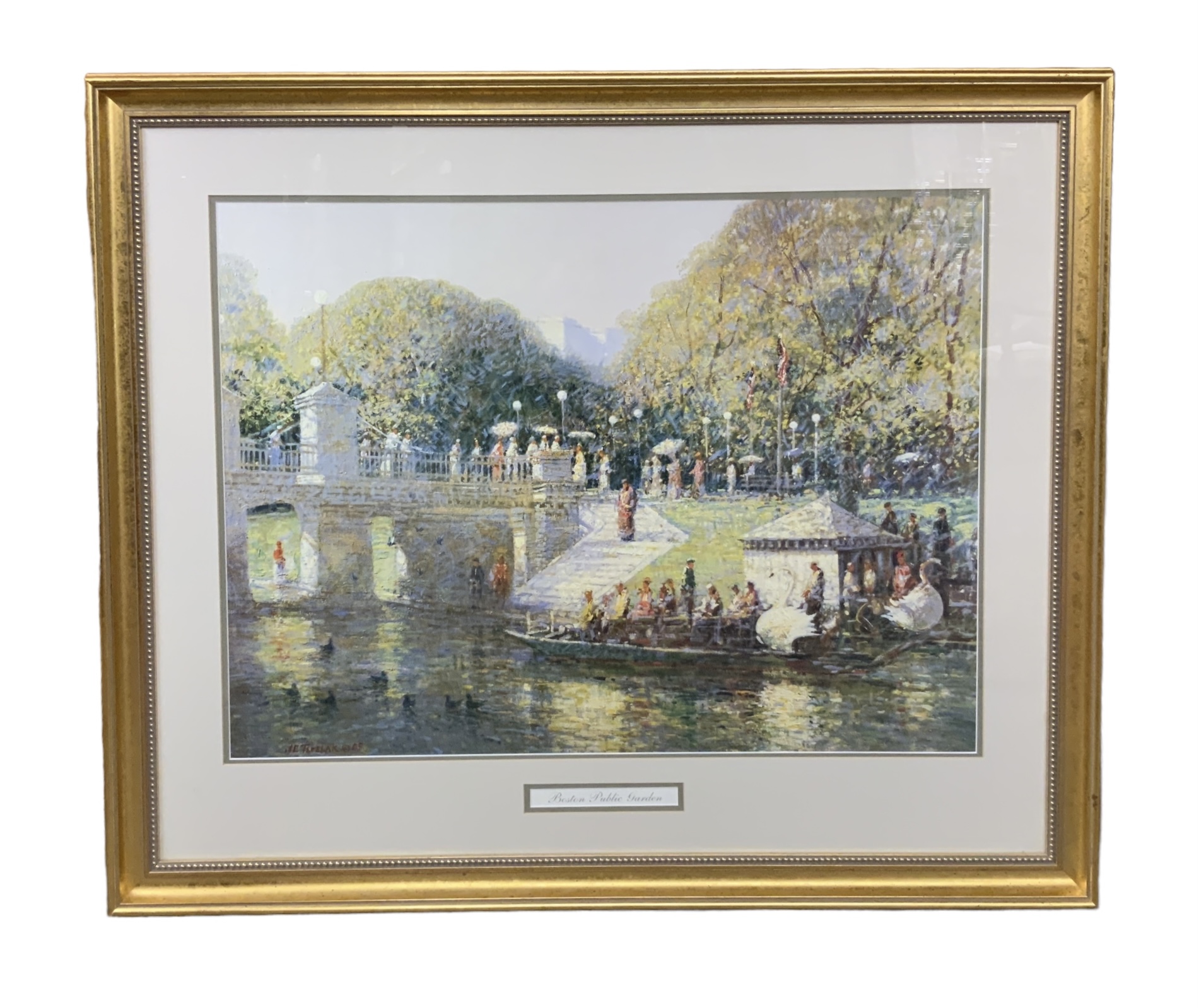 Framed Print Of Boston Common Gardens By John Terelak. In good condition. It is approx. 33” by 39” overall frame size.