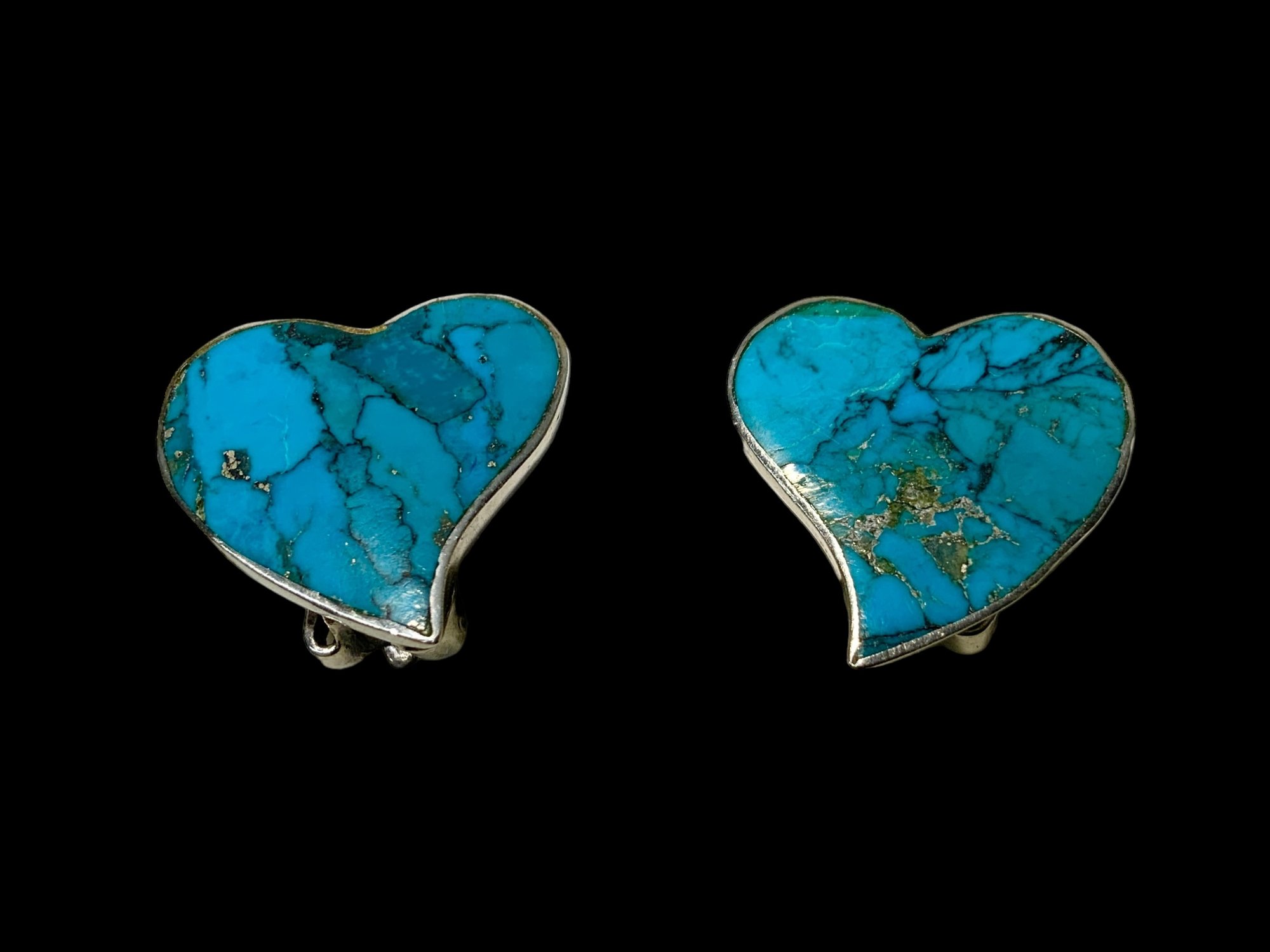 Funky Turquoise Heart Sterling Clip Back Earrings, these measure .75” wide. Marked sterling.