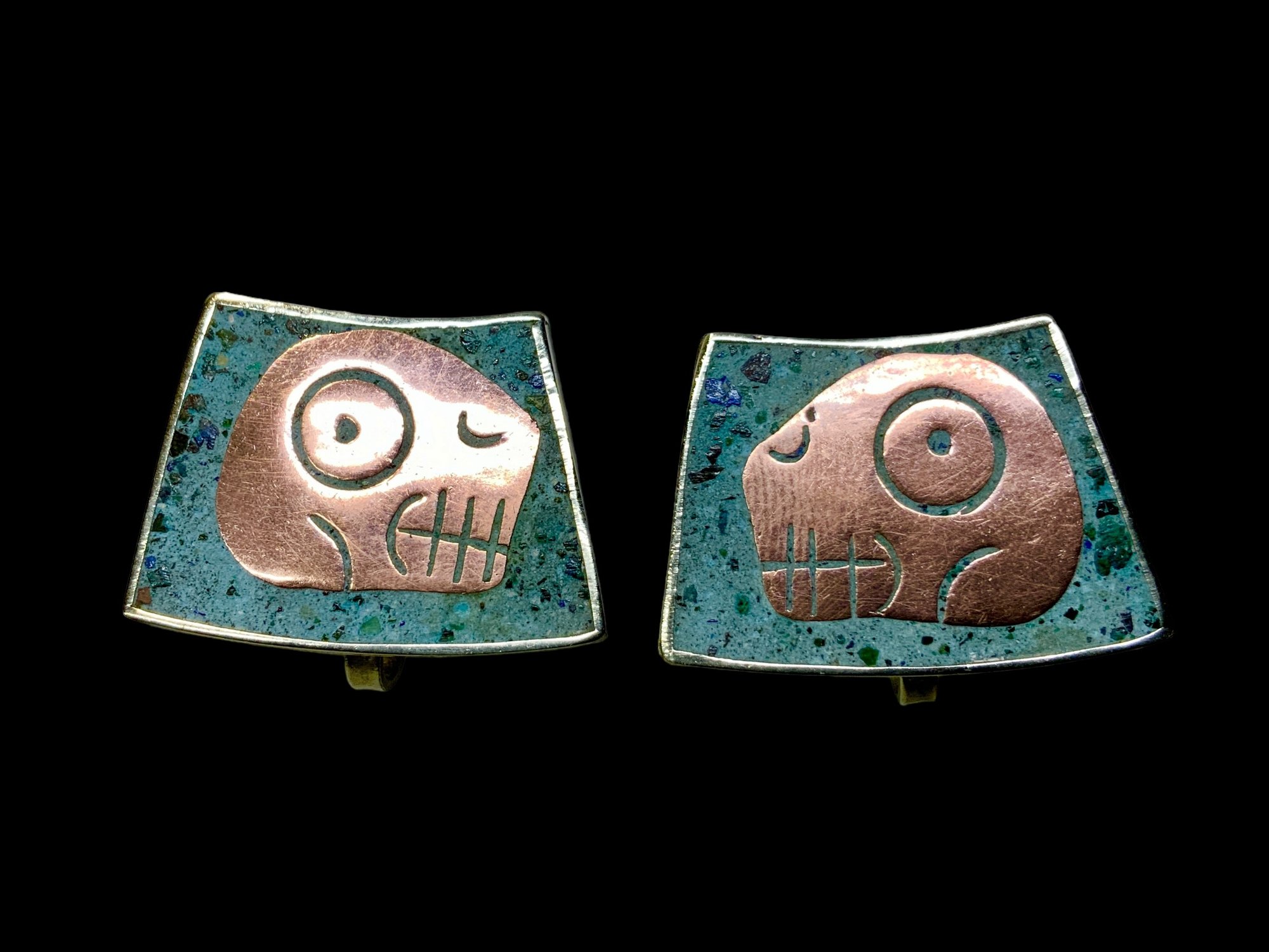 Funky Vintage Sterling Dinosaur Skull Screw Back Earrings, these are iconic. So unusual! These measure 1” wide.