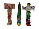 Hand Painted Clay Totem Poll Figures, these are 4” tall, appear to have some age.