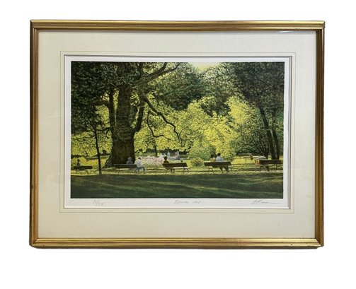 Harold Altman (B. 1924) Large Scale Color Lithograph Benches 1988 Pencil Signed And Numbered. In very good condition. Frame size is approx. 26.5” by 34.5”.