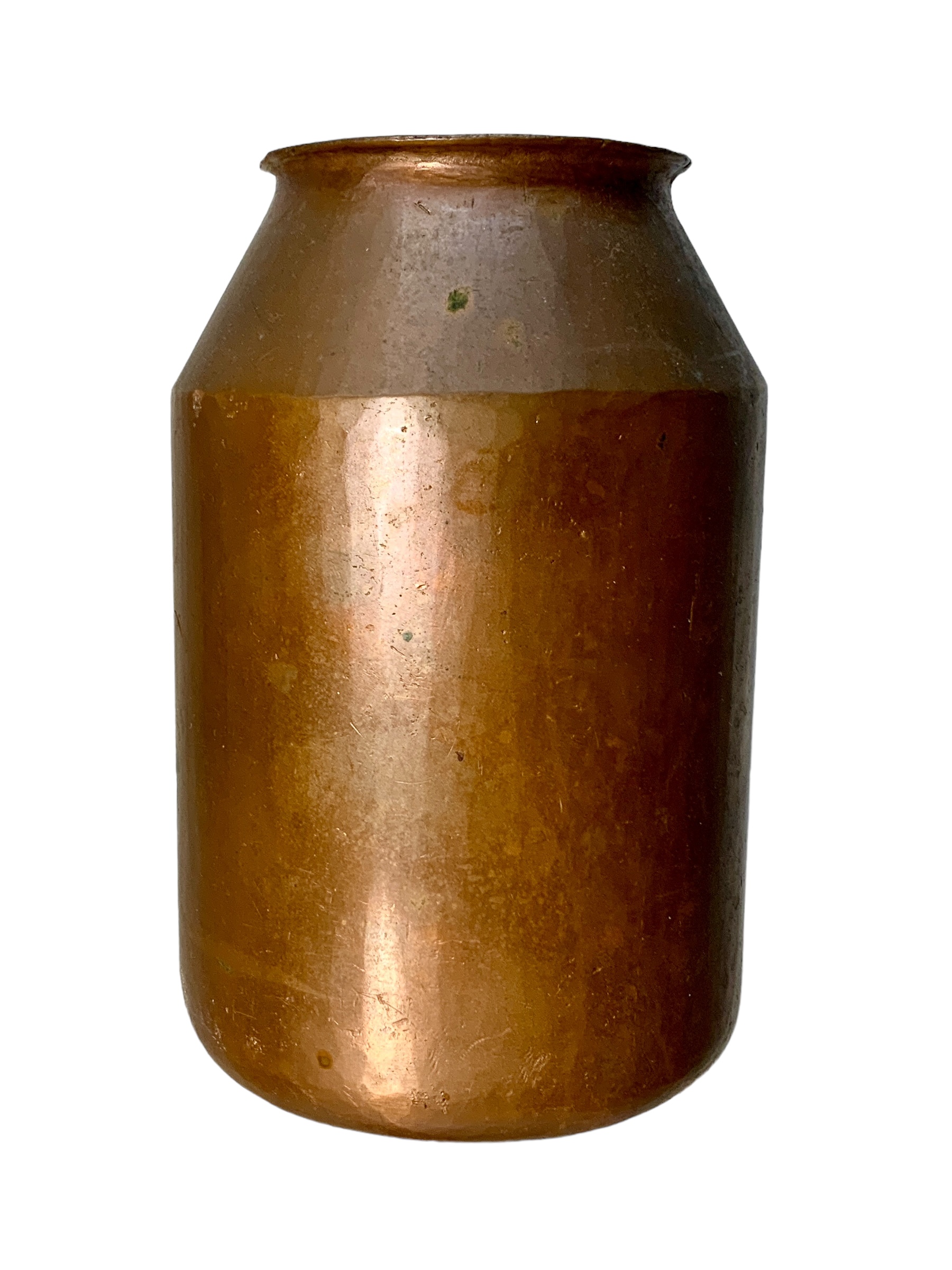 Heavy Copper Arts And Crafts Vase Hand Made, this has such a beautiful glow and hand done hammered finish. It’s very substantial and heavy, measures 5” tall.